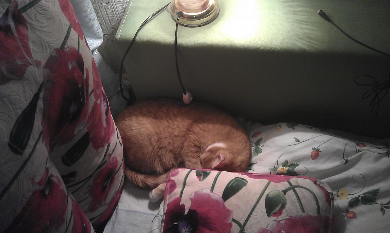 На этом углу под потолком висела, когда жена домой в обед зашла - и начала с радостным мяуканьем съезжать по углу вниз.