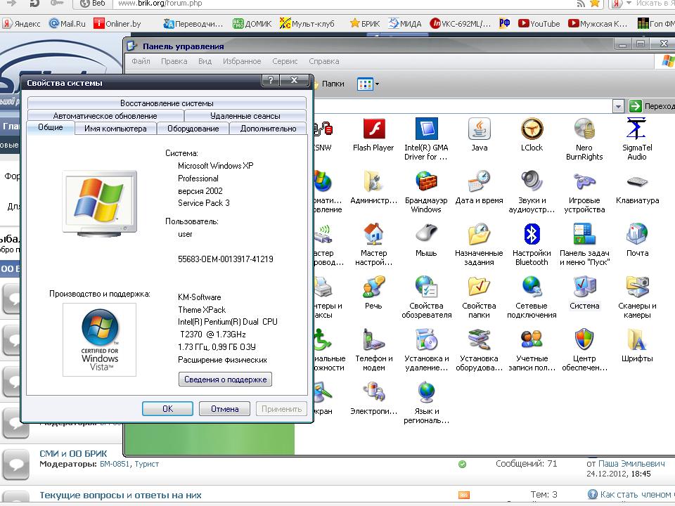 • Короче обновить то обновил. При проверке системы через кнопку "Пуск" - "Панель управления" - "Система" показывает, что Система Servce Pack3