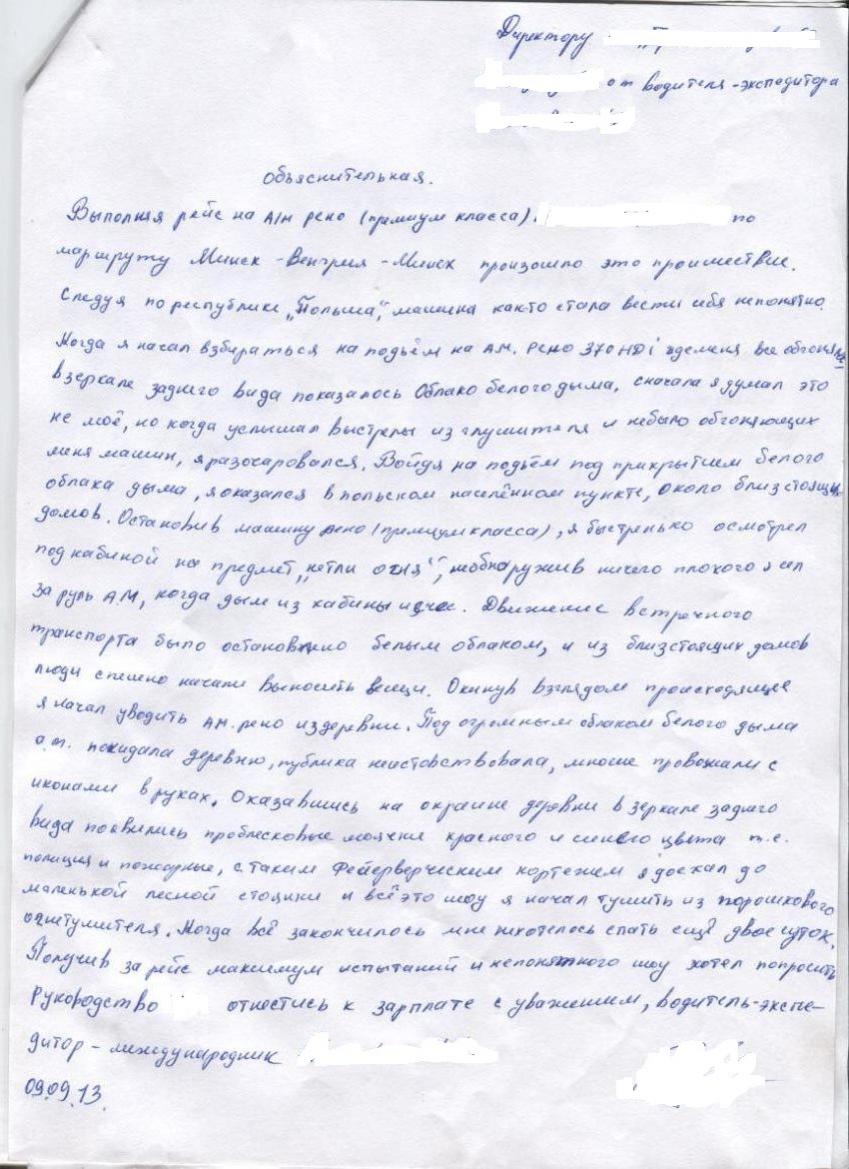 Так уж вышло, работаю в сфере грузоперевозок и водители у нас попадаются разные и не без чувства юмора, хотя по интонации написания и стилистики получается настоящий хорор :D