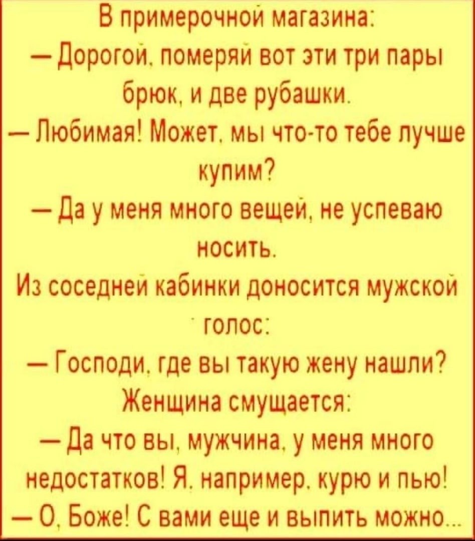 • Муж: Моя жена пропала. Она вчера ходила по магазинам и не вернулась домой!