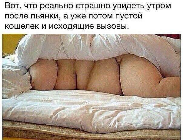 Утром жена открывает дверь. На пороге лежит муж.