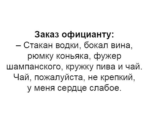 Когда муж выпивает полный стакан водки, а жена морщится одновременно с ним – значит, она его любит!