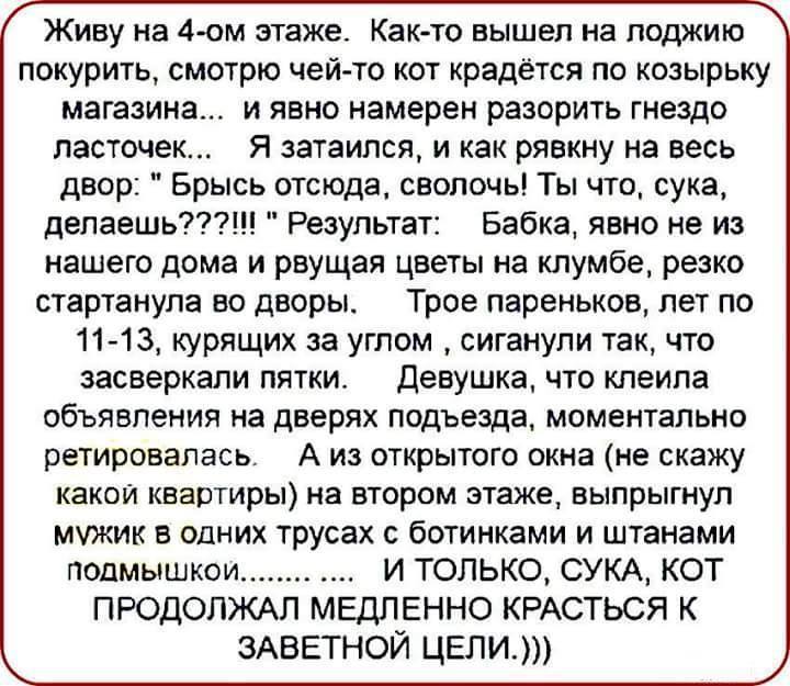 Слава класс ! У нас два года назад похожая ситуация . Рыбачили компанией на Припяти . Вечером отмечая "день счастья" решили в рамках "накушаться" . Но тут беда нехватает двух "пузырей" водки , все перерыли . Решили что в магазине "прое...." . Народ растроеный легли по палаткам . С сябром на ночь с фидерами собрались ловить . Он тихонько в ладонь чихнул , ну а я громко естественно пожелал - Будь Здоров! Тут все из палаток повылетали . Казлы ! Водку Зажали ! Только чуть попоже до нас дошло . Тут как мы засмеемся . Потом перед убытием домой , в машинах наводя порядок нашли две бутылке водки , закатились под сидушки и завалеными скарбом . Посмотрели с печальными глазами , не хватило ВАС вчера .Сообщение от Биг-Мен Посмотреть сообщениеУставшие за день рыболовы улеглись спать. Но двое ещё готовят снасти к утренней зорьке. Один из них был простужен и чихнул.
