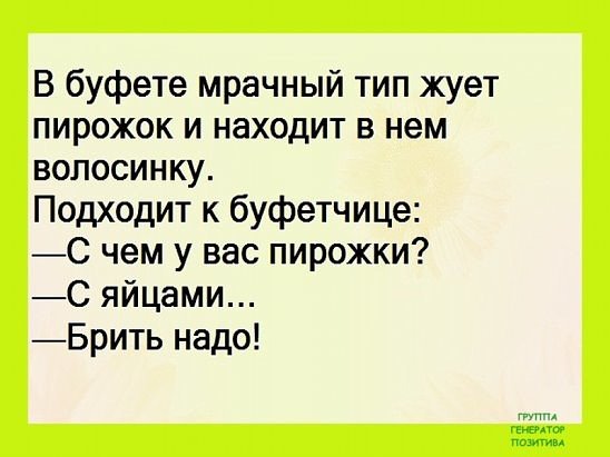 - Катя! Глядя на тебя, можно подумать, что в стране голод!