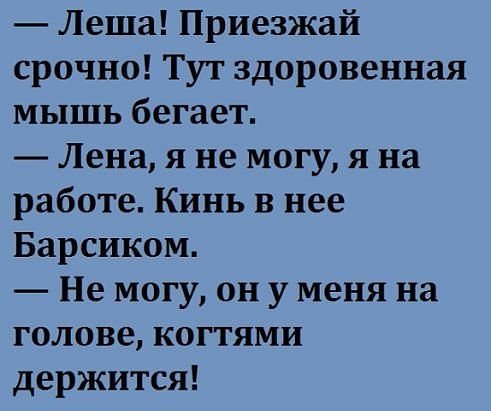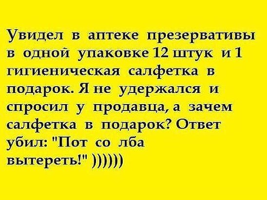 Она: - Мы будем секасом заниматься или инвентаризацию проводить?Последний раз редактировалось Биг-Мен; 16.03.2016, 08:50.