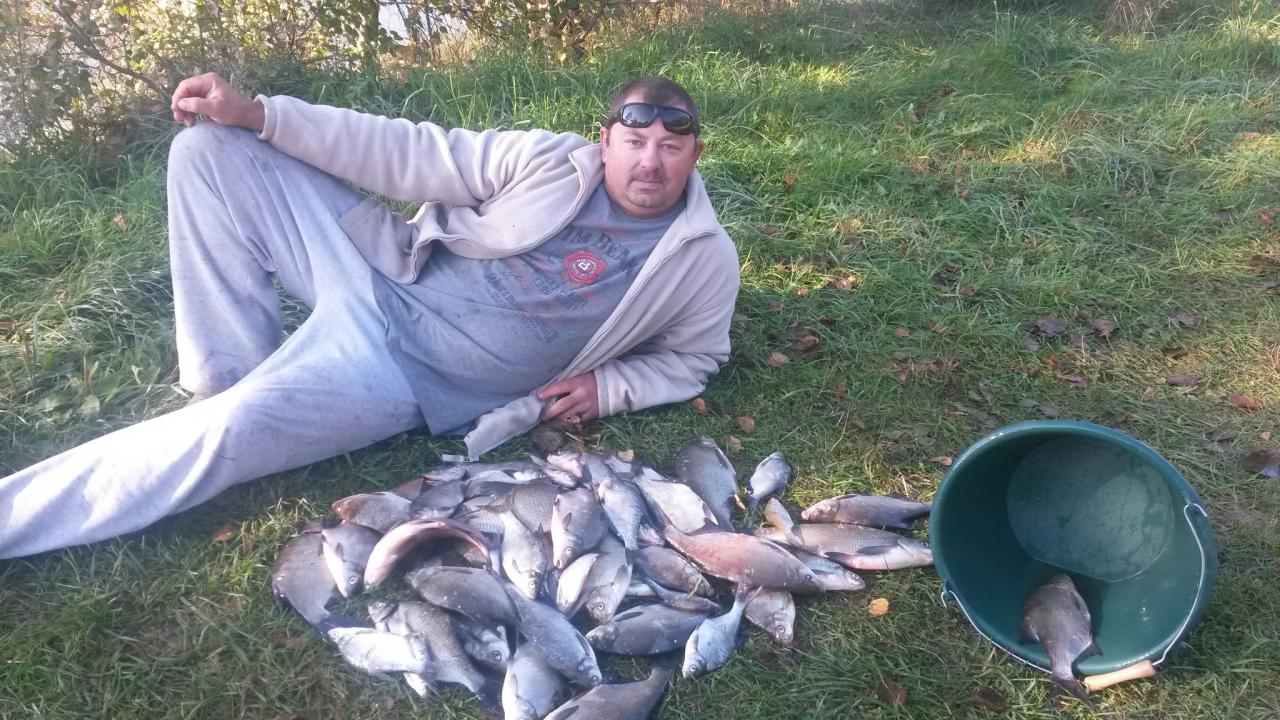 По рыбе было вообще нереально. Вилейка, как всегда, умеет удивлять...За два дня поймал 8 килограмм подлещика (лещей на этот раз не было), 4 карпа (три околокилошника и один грамм на 400, два из которых вывел на фидер Михалыча.Первый так вообще палку утянул, пришлось затевать спасательную операцию), с пяток карасей грамм по 150-200 и отличного, бронзовобокого, упитанного ЛИНЯ, который завесил 1400.И все это, смею напомнить, в середине октября :). В полвторого ночи, без подсака, с полусевшим фонарем, на скользких плитах - это было незабываемо!Руки потом полчаса тряслись...Кормил, как обычно, RS лещ спорт черный, офигительная прикормка!Один из участников мероприятия ;), после того, как я достал очередного подлещика, выдал на гора "Ну нафиг этот дунаев...Дай мне РСки!" В общем, было просто супер!