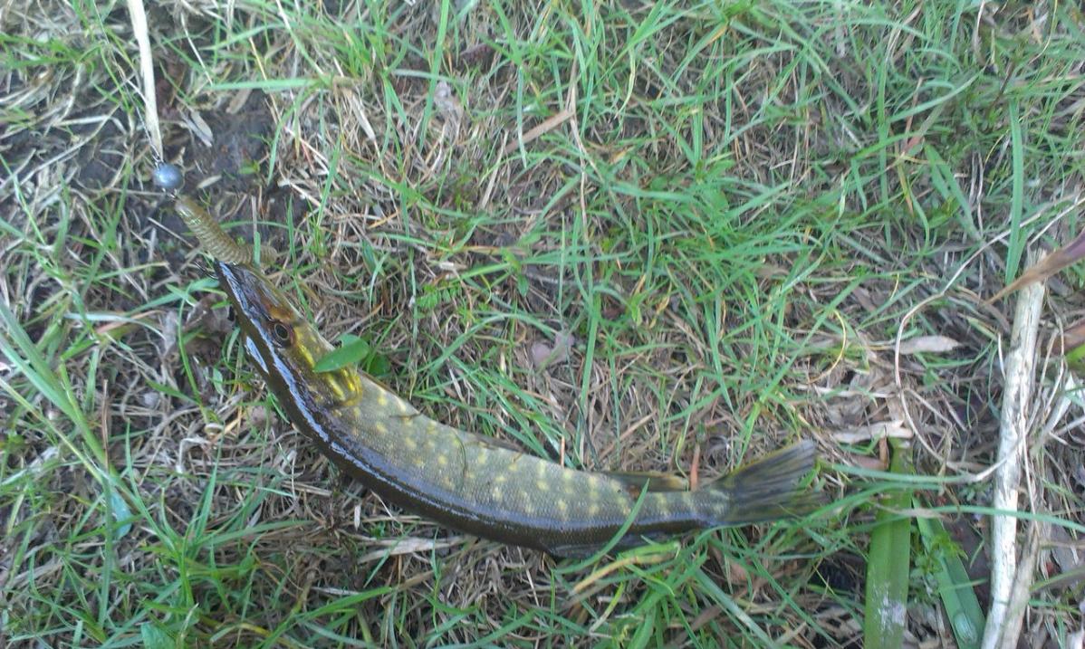 • Субботнюю вылазку решил посвятить лайту.Поклевок масса,но размер не тот.Единственное что поймал достойное-это лобастик(завесил 1230 гр.) .Пойман был на кейтеч свим импакт фэт 2.8,также неплохо показала себя тиога.Нажмите на изображение для увеличения.