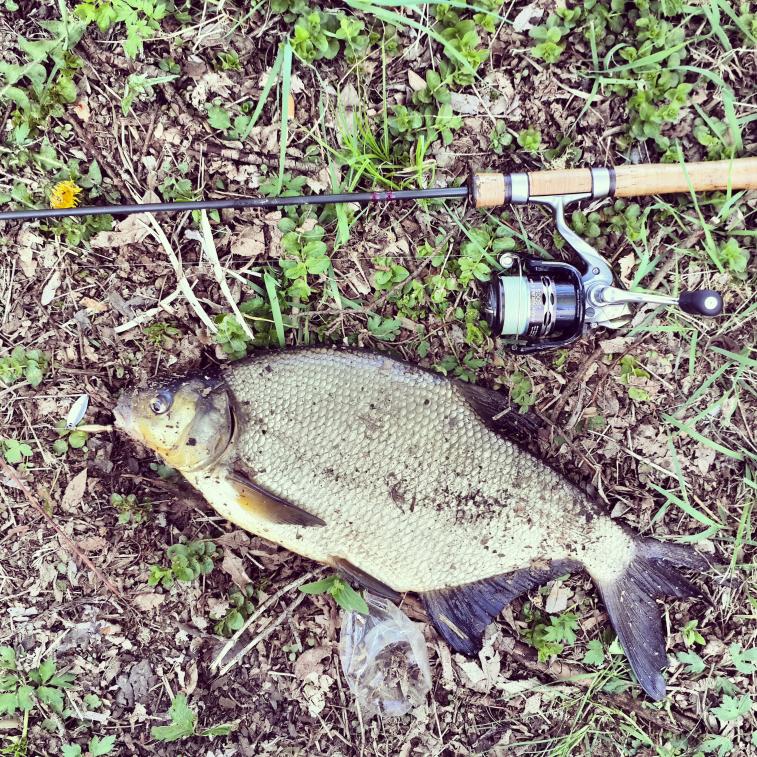 Река и местность красивые. Уже поостыв, без надежды на трофей, не спеша идем вниз по течению, наслаждаемся проснувшейся природой. Облавливать такую реку легко. Из каждого омутка выдергиваю одного-двух ладных окуней, приятно. Ловлю только на блесны. Экспериментирую с последними приобретенными вертушками Лохматого. Подхожу к неглубокому прогону с лопухами на дне. Заброс поперек течения, дно хорошо просматривается, веду блесну максимально медленно, то приподнимая над лопухами, то опуская ее в ямки. И тут, приподнимая блесну над одним из лопухов вижу блеснувший бок немалой рыбы, а следом слышу тугой звук зажатого фрикциона, спиннинг свернулся в баранку, течение работает в пользу соперника, но нет, не уйдешь. Язь! 900 грамм.