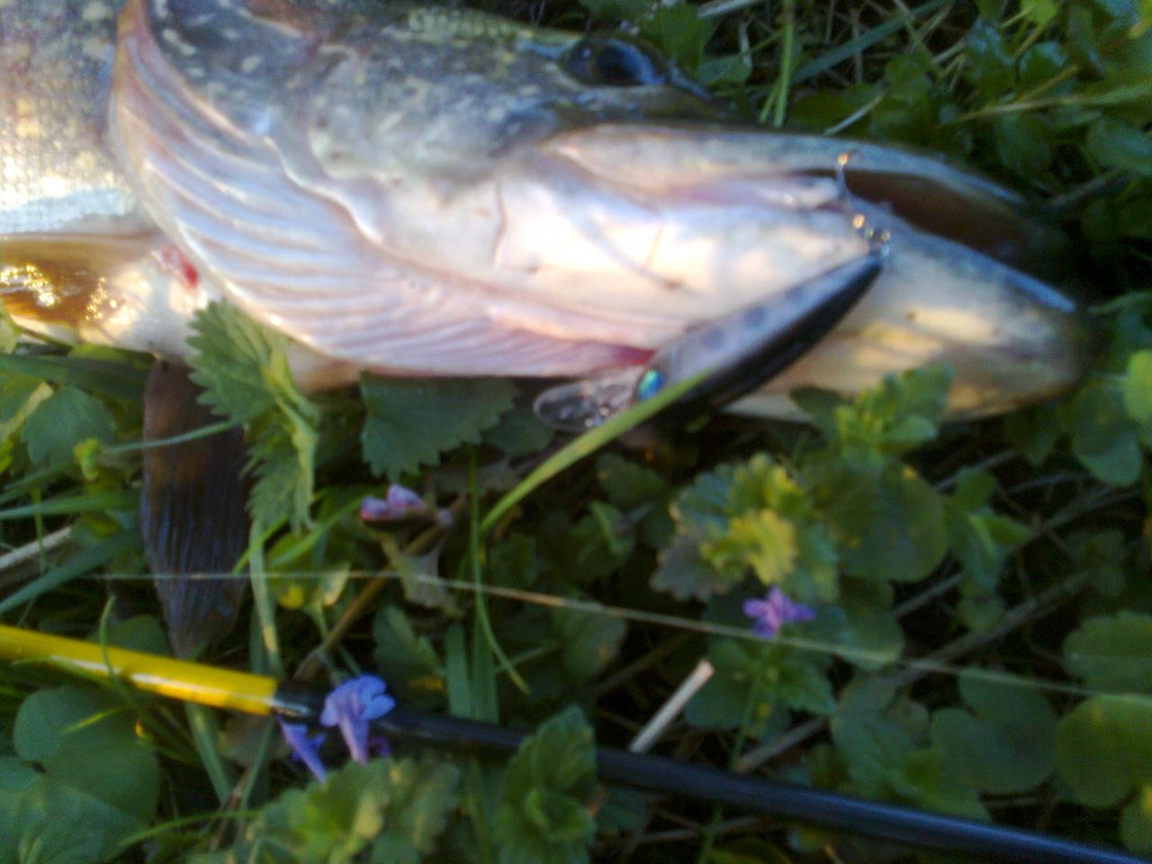 Всем здравствовать! 30 мая пытался вечером разловиться головлём. Увы, за три часа ни тычка. На обратном пути решил покидать в месте, где на дне завал из топляков. Стрёмное место, в смысле зацепов... Практически на первой проводке - сильный удар и сход. Задний тройник разогнут, один крючок сломан... на КАСАДАКА ИОН в диповом исполнении... в самом малом р-ре... Так как охотился на головля по инерции решил дать месту отдохнуть... Вернувшись, цепляю Чирфульчика и - удар, потяжка, спиннинг в дугу, фрикцион поёт... Песня! Но когда в метрах 15-ти ниже по течке ЭТО развернулось и понеслось против течения на меня, понял что увы... головлём и не пахнет. Теперь всЁ внимание на спиннинг, работа фрикционом и подлаяя мыслишка про 5-ти см поводок из струны... Спиннинг - первые минуты сильно опасался, как бы не сломать - так его колесом до держака выгибало. Новый, до этого только окушками опробованный... Потом успокоился и с пятой попытки припарковать - взял за жабры. Для этого пришлось зайти в воду, на пятках съехав с обрыва... Да... Малые речки преподносят иногда такие сюрпризы ... Щука завесила 2 100... Внутри - пустая...Нажмите на изображение для увеличения.