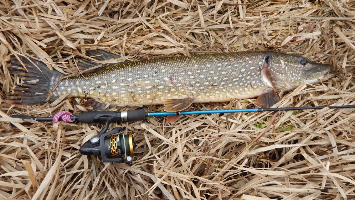 Получилось сегодня с обеда отменить дела, вырвался на малую речку. Из всех снастей в боеспособном состоянии оказался, теперь уже сына Блю Берд, до 5-ти грамм. Сомнения были, что не пробью ямки и течение. Проблема оказалась в моих руках. Приноравливался,удивляясь, как раньше ловил этой сопелькой? Вспомнил после нескольких первых окуней. 3,5 -4 грамма, Рейнс, Роквайб, затем наткнулся в сумке на Айковских червей. Неожиданно разловил щукой. Взвешивать отпускаемую рыбу моветон, не на соревнованиях, на см 5-7 короче колена Птички. Вжикала фрикционом, турзалась минут двадцать пять. Флюр 0,16, крючок салмовский, ПЕ-ешка 6 лб. и нервы выдержали.Под занавес влетел окунь 820 грамм, забрал ещё на 460 и 560. Четырёх отпустил размножаться. Лягухи не прогрелись, десятками как зачарованные сидят на тропинках:o.