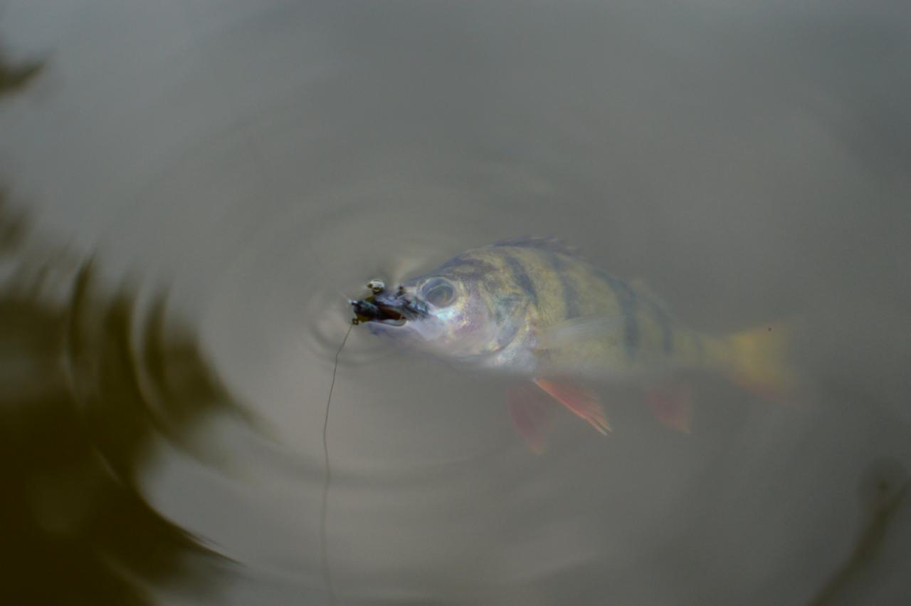 И вечером можно рассчитывать на выход. Как правило, опять же, в сумерках - перед самым заходом солнца, а ещё лучше - после. В такое время можно поймать окуней не столь крупных, но больше голов. Не намного, к сожалению, но больше. Примерно от 200 граммов и до 550.