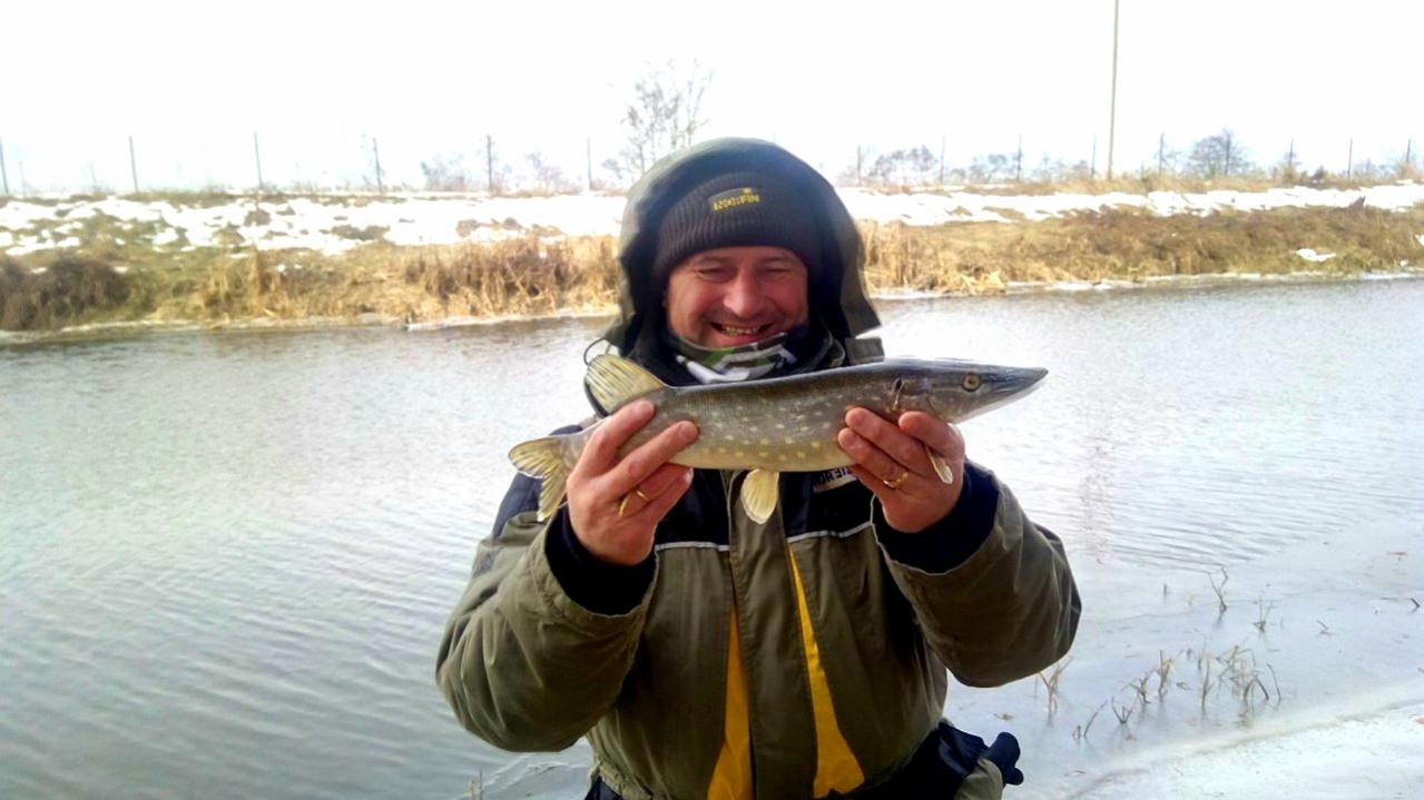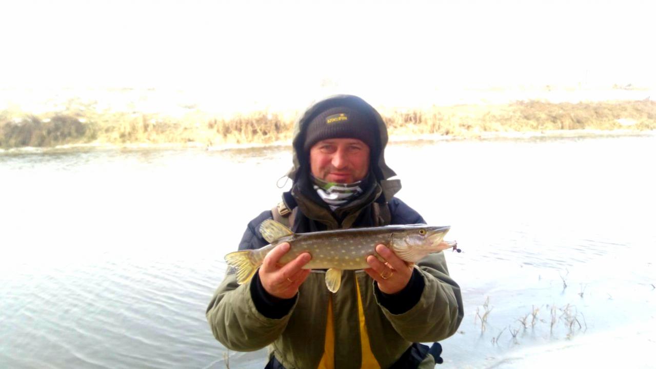 Река Ореса встретила нас не малой течкой и пронизывающим ветром. После пару-тройку забросов принимаем решение ехать на сброс с Любаньского водохрарилища. Там немного потише но всё же рыб отказывался клевать. Виталя изловил парочку нано окушков, не считая по парочке подергушки у меня и Серёги. Выпиваемпо чашке чая и вперёд на родной обводной. Результат и тут такой же, не считая у меня одной поклёвочки, при которой из за примерзания плетни к кольцам не удалось засеч. Но мне повезло больше, изловил первую в этом сезоне пятнистую позарившуюся на 2" наяду от LD. Которая после фотосессии была благополучно отпущена в родную стихию.