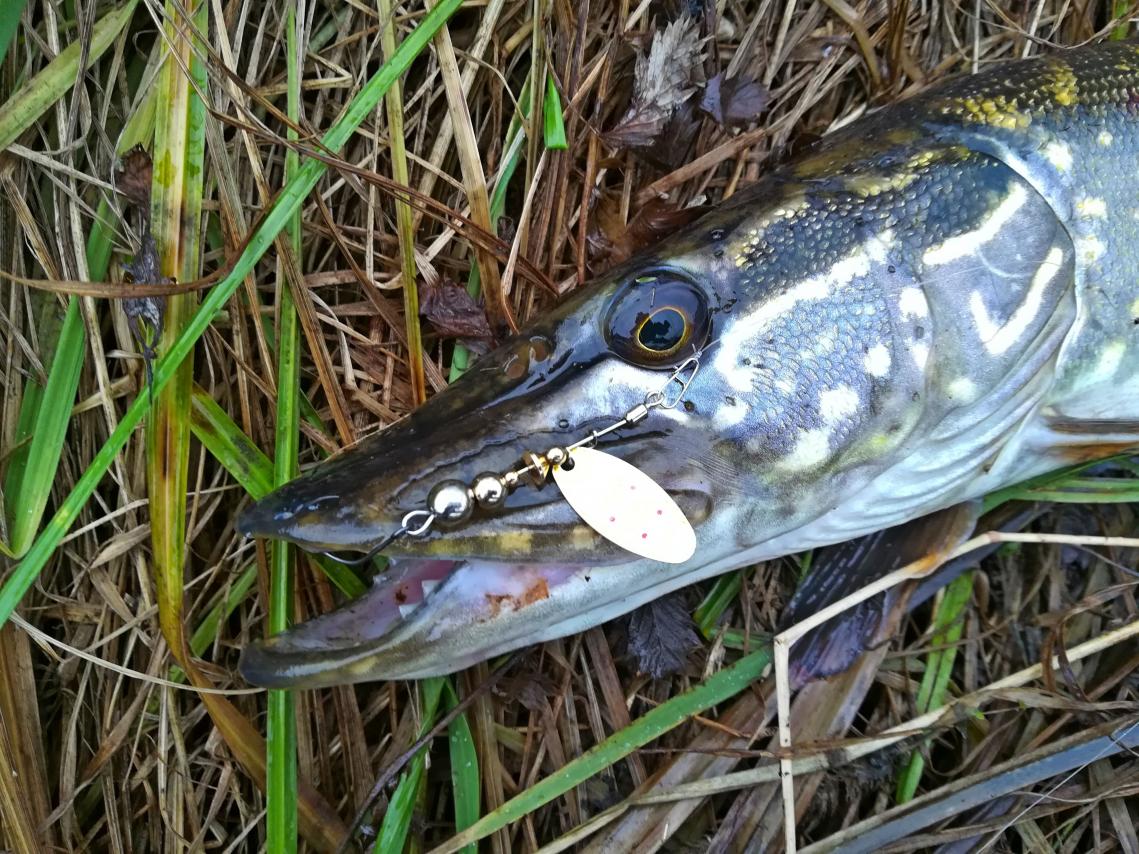 Вроде бы конец осени, температура воздуха около 0, а щупачка-подкилошника удалось уговорить на совсем нехарактерную для этого времени и места приманку - вертушку 00-ку.