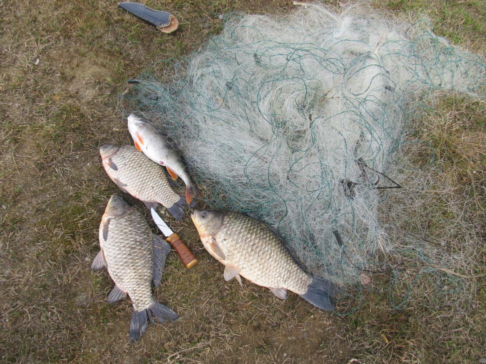 ID:	3586489 и отпущен обратно в родную стихию. Движемся дальше... После очередного заброса у меня случился зацеп, на первый взгляд "ГЛУХОЙ" ,но намотав шнур на руку почувствовал что это зацеп упруго продирается между травинками и различным мусором на дне, после десяти минут борьбы мы достали "свеженькую" сеть :o на вскидку было метров 90. Сразу из кустов вышли два мужЫка , один схватив два велосипеда и резко " надавил на педаль" ,а второй подошёл и "жадно" смотрел как мы извлекаем и реанимируем рыбу . И со словами :"Так зАБЯРАЙ НА УХУ", быстро ушёл . В ней было три карася и один окунь Нажмите на изображение для увеличения.