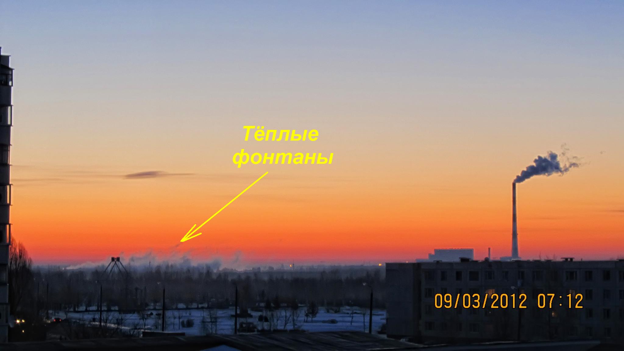 Только что выходил на лоджию и сфоткал фото-факт. Тэц работает на всю катушку. Труба дымит, вода парит, фонтаны брызжут и жизнь продолжается!