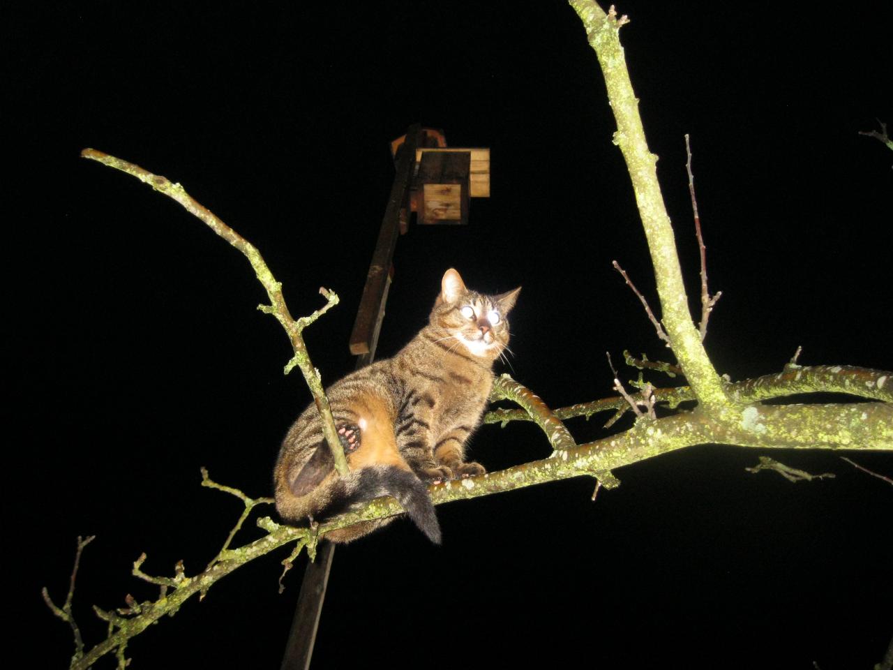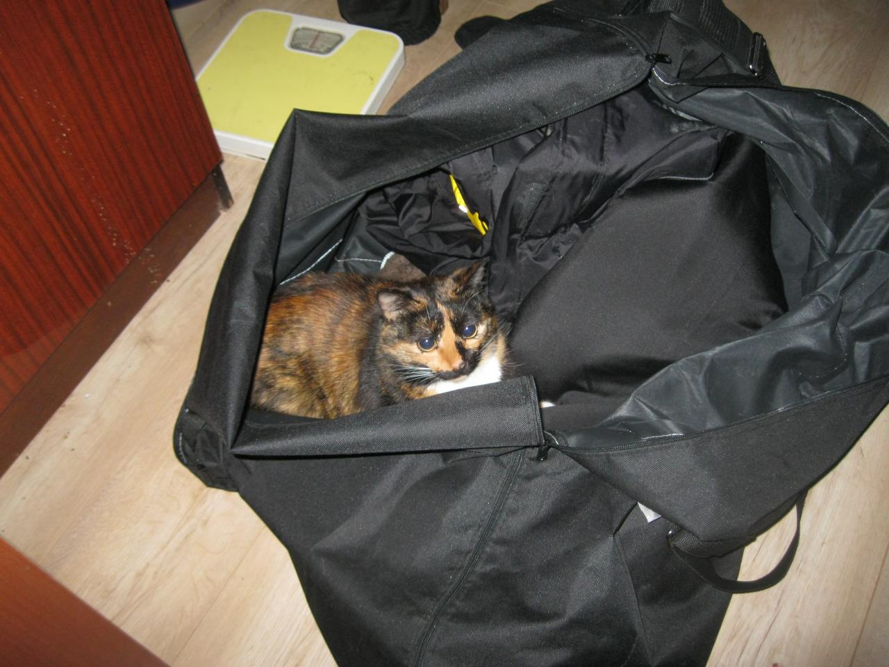 Домашние коте провожали довольно своеобразно - Мурза спряталась в бауле с теплыми вещами (хотела с нами поехать?), а Барсик с высоты яблони уже высматривал, когда мы вернемся с уловом...