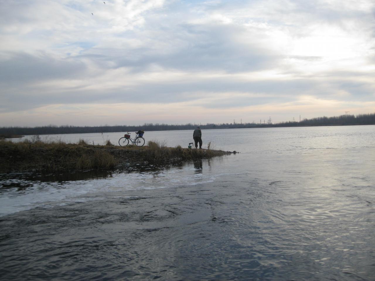 Через пол-часа подтянулся и Владимир с четырьмя небольшими карасями и одной уклейкой в садке, потому что по сравнению с Теплым здесь - клевало! Без прикормки и без бубна! Не очень часто, с перерывами (на покурить) но уверенно! На границе течений и на волне! На манку, макарики и опарики! Практически без мелочевки! Красота! Вот только ветер... Кстати, замерил температуру воды - на Теплом недалеко от устья (там где бетонная фигня с железяками) было +10,5 а на сбросе +8,5.