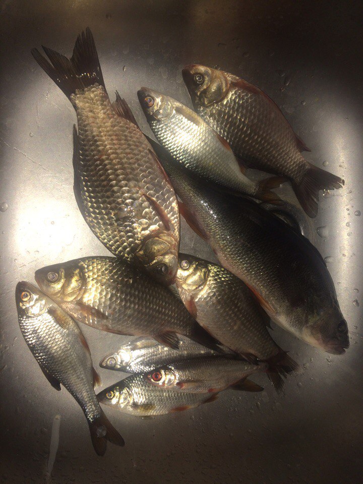 По рыбе грустно, 4 карася, 14 уклеек, штук 10 бычков и штук 10 "амурских". Клевало только на мотыля, караси все из тросТника.
