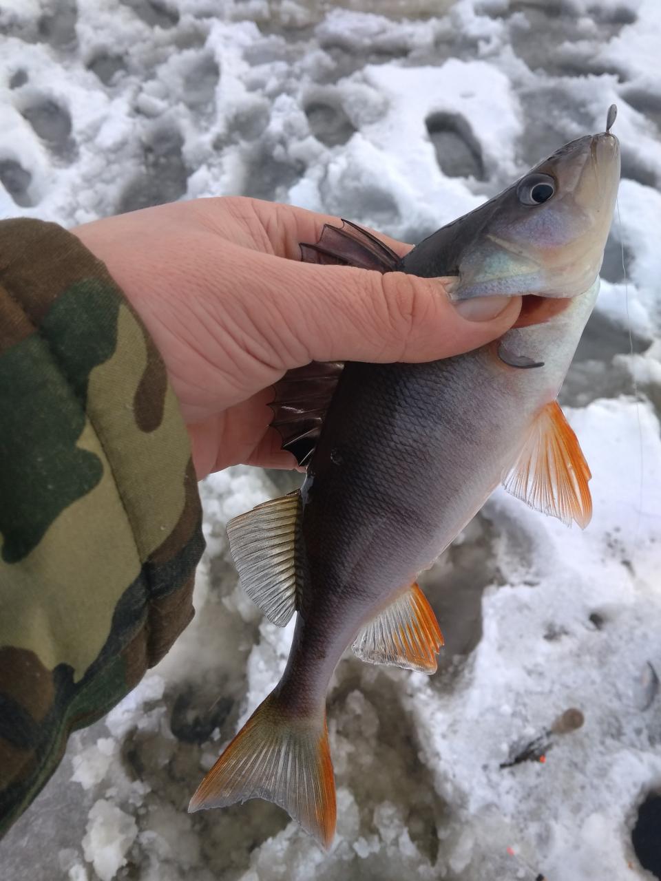 • Сегодня снова был на материнском с 10 до 15. Вымучил десятка 2 окушков на мотыля. Сегодня что-то вяло они клевали, 1-2 с лунки и можно уходить на другую. Половина лунок вообще не работала, ни поклевки. Один вполне неплохой попался, но только один.Нажмите на изображение для увеличения.