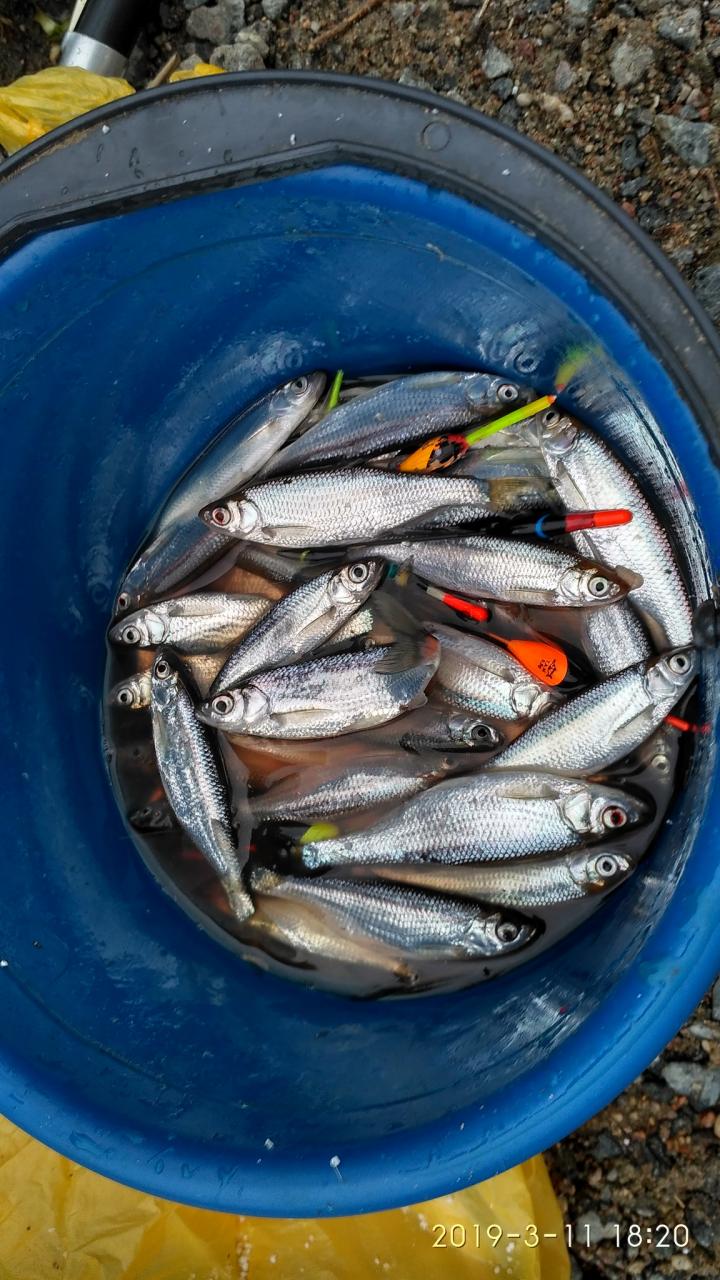 На мелкого красного ловилось хорошо,а белого жирного приходилось плющить,чтоб нутро хлынуло.Периодически кидал горстью приваду. Ловил до 14.00 и пришлось вообще домой ехать,работа отменилась. В итоге 219 рыб. Засолил.
