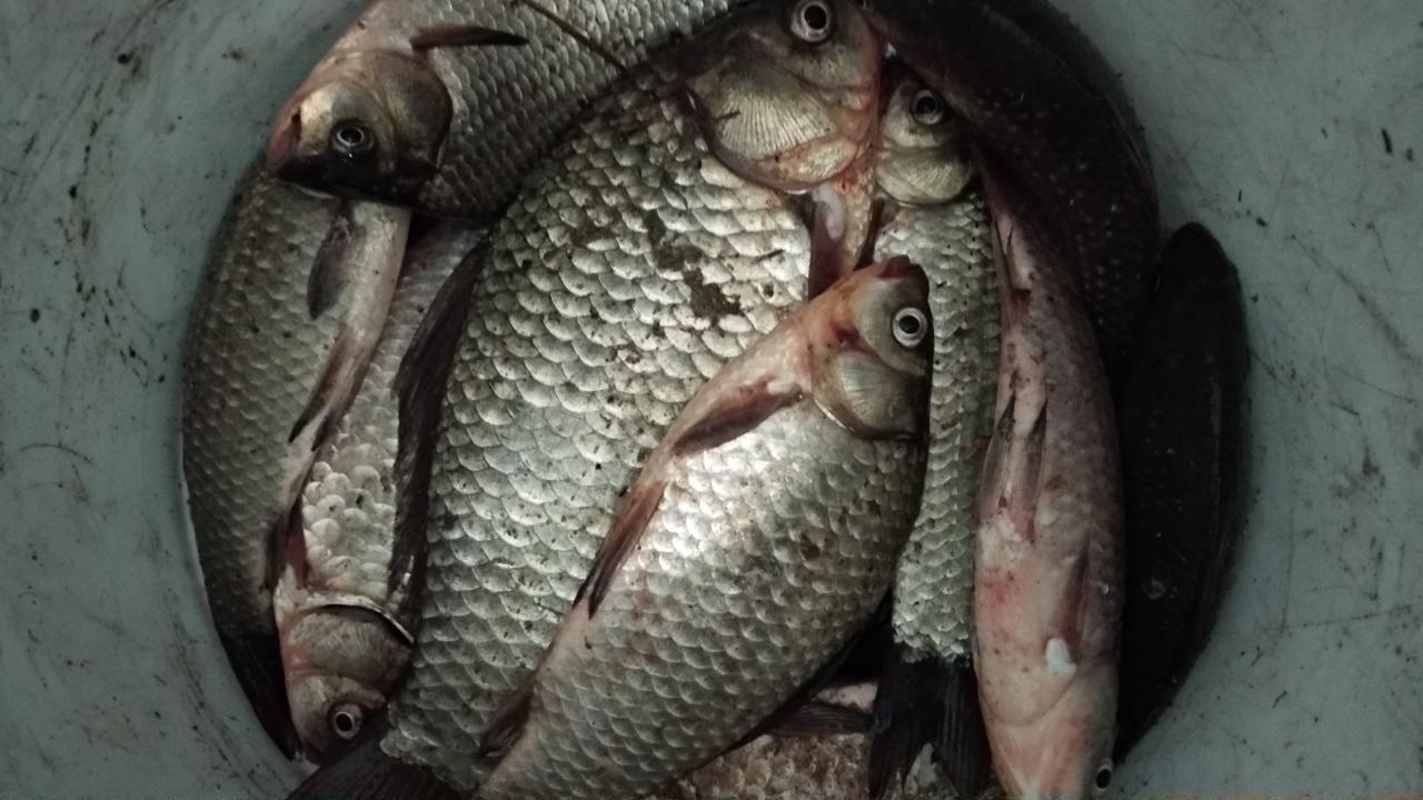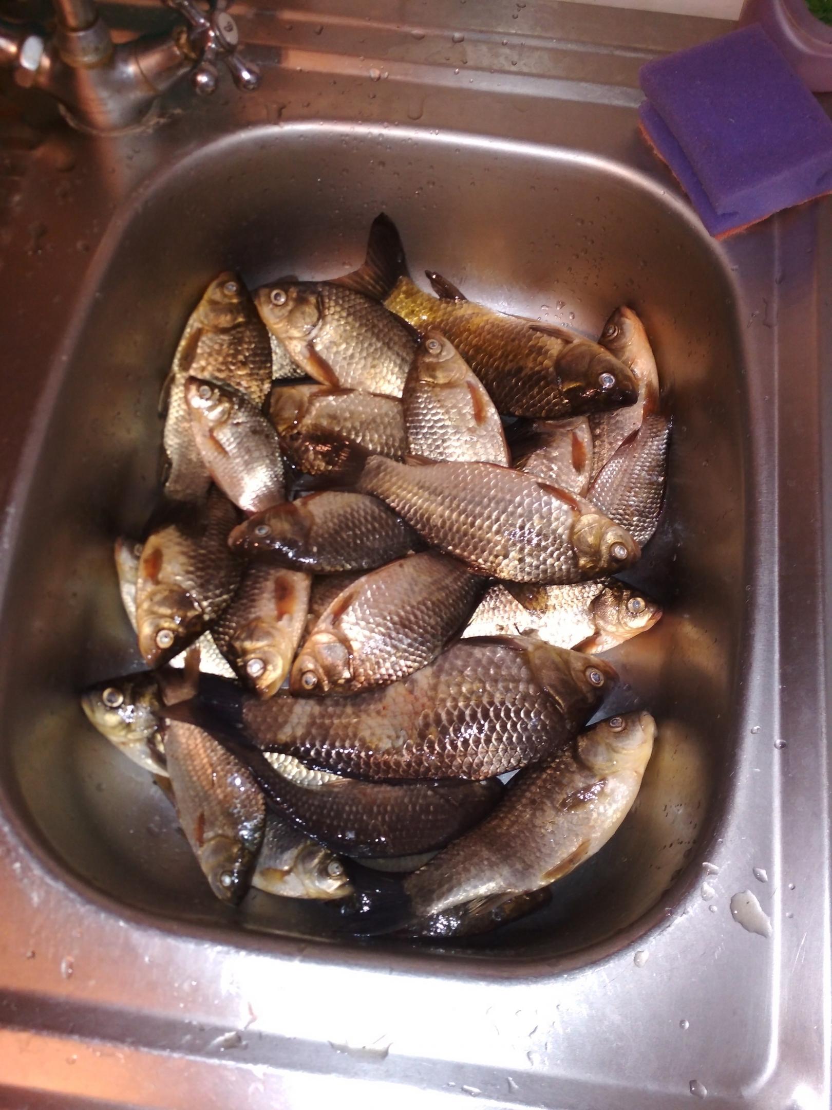 • Добрый день. Сегодня. 46 карасей. 55-60% годится только на откорм котам. На фидер скука - 6 карасей, но как всегда ставлю один для проверки. Основной лов на удочку, хотя с сегодняшним ветром ловля на поплавочку была на грани экстрима.