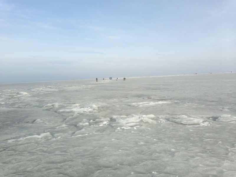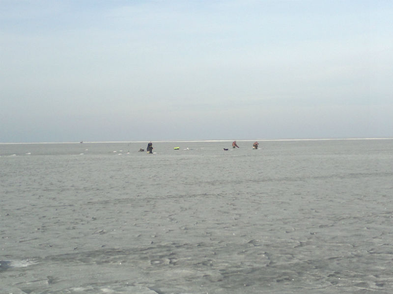 Ловили в Островцах на глубине 7-7,5 метров в 6 км от берега(ехали на буране).По моему мнению лед еще вполне нормальный,правда попадаются живые трещины.Рыбка клевала у всех по разному.При взвешивании результат показал,что средний вес плотвы 100 грамм .У меня самая большая грамм 170.Иногда попадаются окушки.Ребята поймали одного налима с ночи и одного днем на жерлицы.