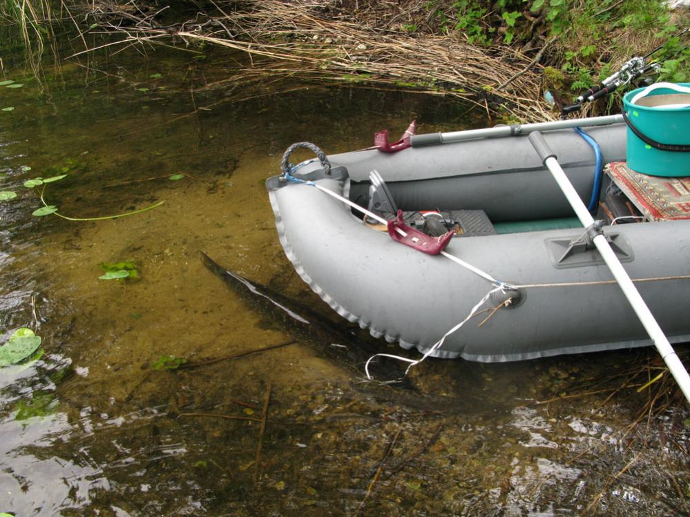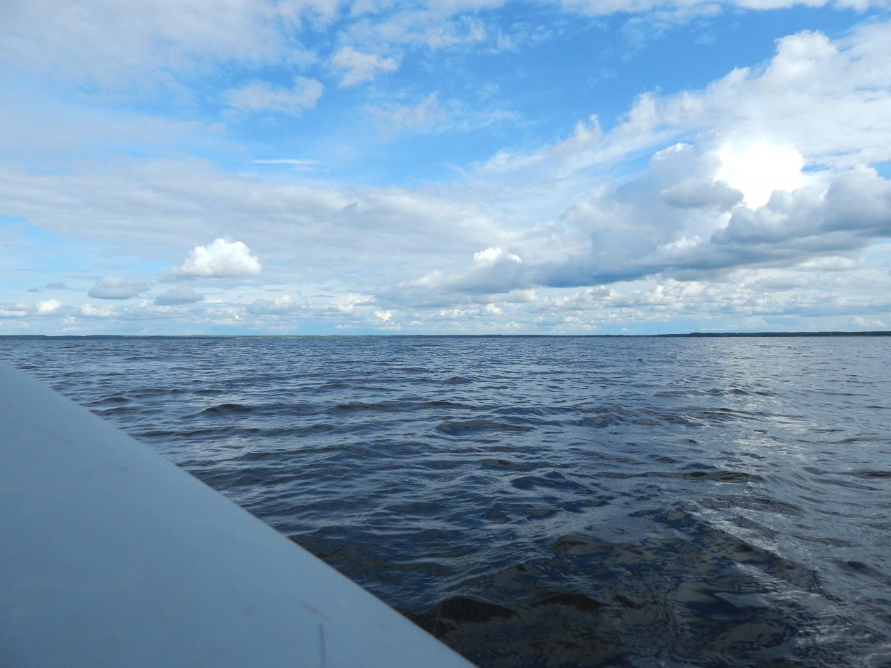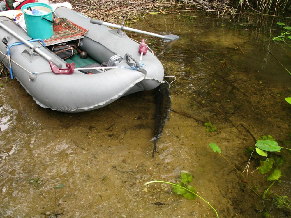 Где-то через час ко мне подошла большая моторка рыбнадзора. Инспектор, поинтересовался кто я и откуда, как мои дела. Спросил не видел ли я сети и браконьеров. Я конечно ничего не видел. Лодка браков до сих пор маячила на горизонте. Инспектор пожелал мне удачи и укатил в сторону Сигово. Где-то через полчаса он прокатил назад и я решил закончить рыбалку. Надоело впустую прочесывать нецепляйками тростник. Ведь надо было еще заехать на первое озеро за рыбой. Снова искупался и в путь.