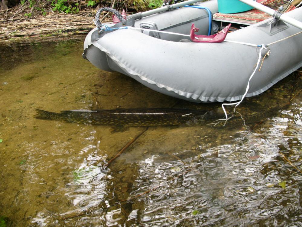 Хочу рассказать еще о таком явлении как прилив, которое здесь наблюдал. Точнее не прилив как таковой, а просто поднятие уровня воды. Началось это, как мне показалось, после смены ветра и он начал дуть с запада. Поднялась небольшая волна, которая шла против течения. Кроме этого, в 10 км на западе находится Псковское озеро, в которое Великая впадает. Возможно с озера, площадь которого составляет 710 кв.км подняло волну и погнало её в реку, что затормозило естественный приток воды и уровень её начал повышаться. В течении дня мне пришлось 4 раза отодвигать кресло от кромки воды, в общей сложности на 1,5 метра. Ещё интересно было наблюдать, когда по реке проходил катер береговой охраны, такая лодочка длинной метров 15 несущаяся со скоростью км 60 в час. Один раз он прошел в сторону Пскова, а часа через 2 обратно. При этом поднимается нешуточная волна. Местные, зная об этом, с матюками заранее вытащили садки и отодвинули весь скарб подальше от воды. Их примеру последовал и я. Причем проход катера практически не повлиял на клев.