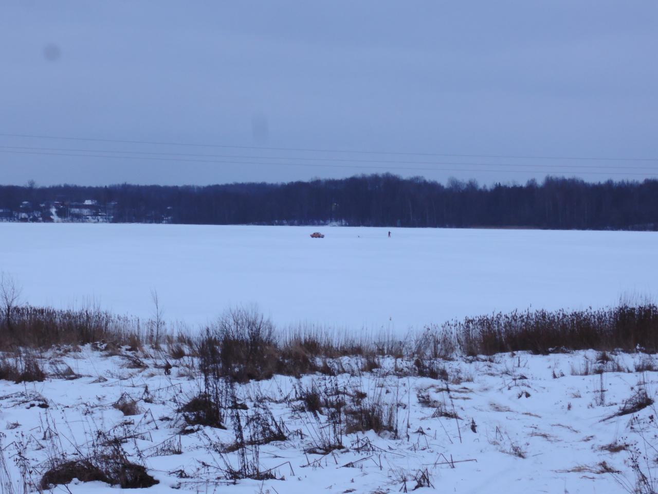 По сравнению с нашим климатом, как-будто на Чукотке побывали.:) На весну никакого намёка - мороз бррр..., кругом снег, на озере снег, вода только подо льдом, а лёд судите сами.