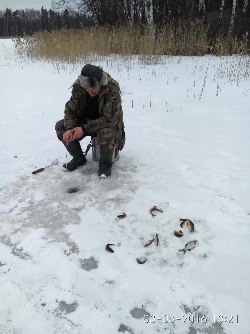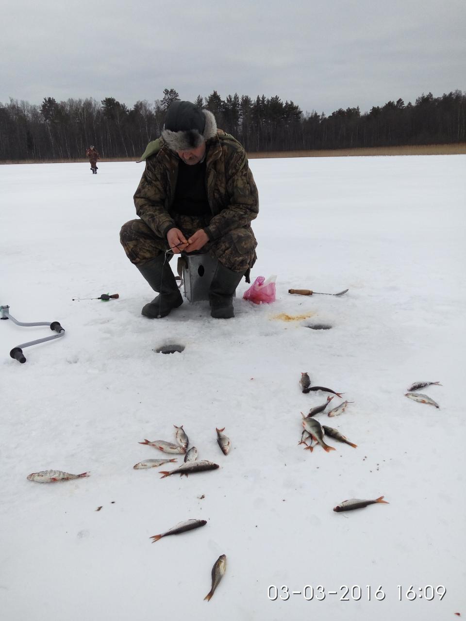 • Сгоняли на денёк на Чудское в Ветвенник. Весной там даже и не пахнет. Лёд окреп и потолщал только на против церкви замёрзшая. огромная промоина, но все её обходят. Народу прилично, ловят мехами. Витебских тоже хватает. С 7.45. до 15.30 на быструю снасть успел поднять 307 плотвин общим весом 36 кг. Путём не сложных математических вычислений получилось, что на каждую рыбку у меня было затрачено не многим более 1 минуты. Это не рыбалка- это Чудская работа. В прилове выхватил лещика на полтора кг.
