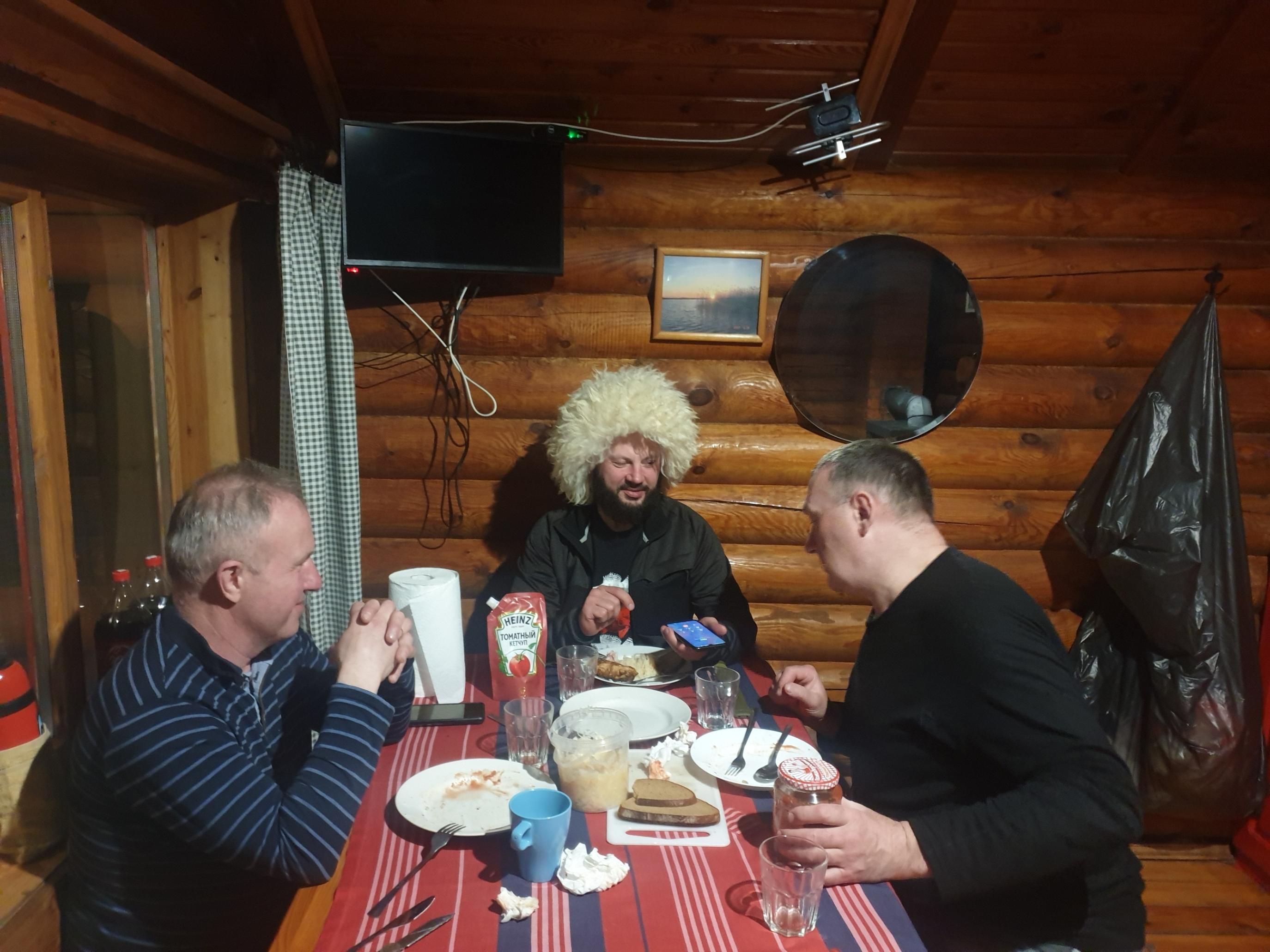 Вечером торжественный ужин знаменовал успешное завершение рыбалки.