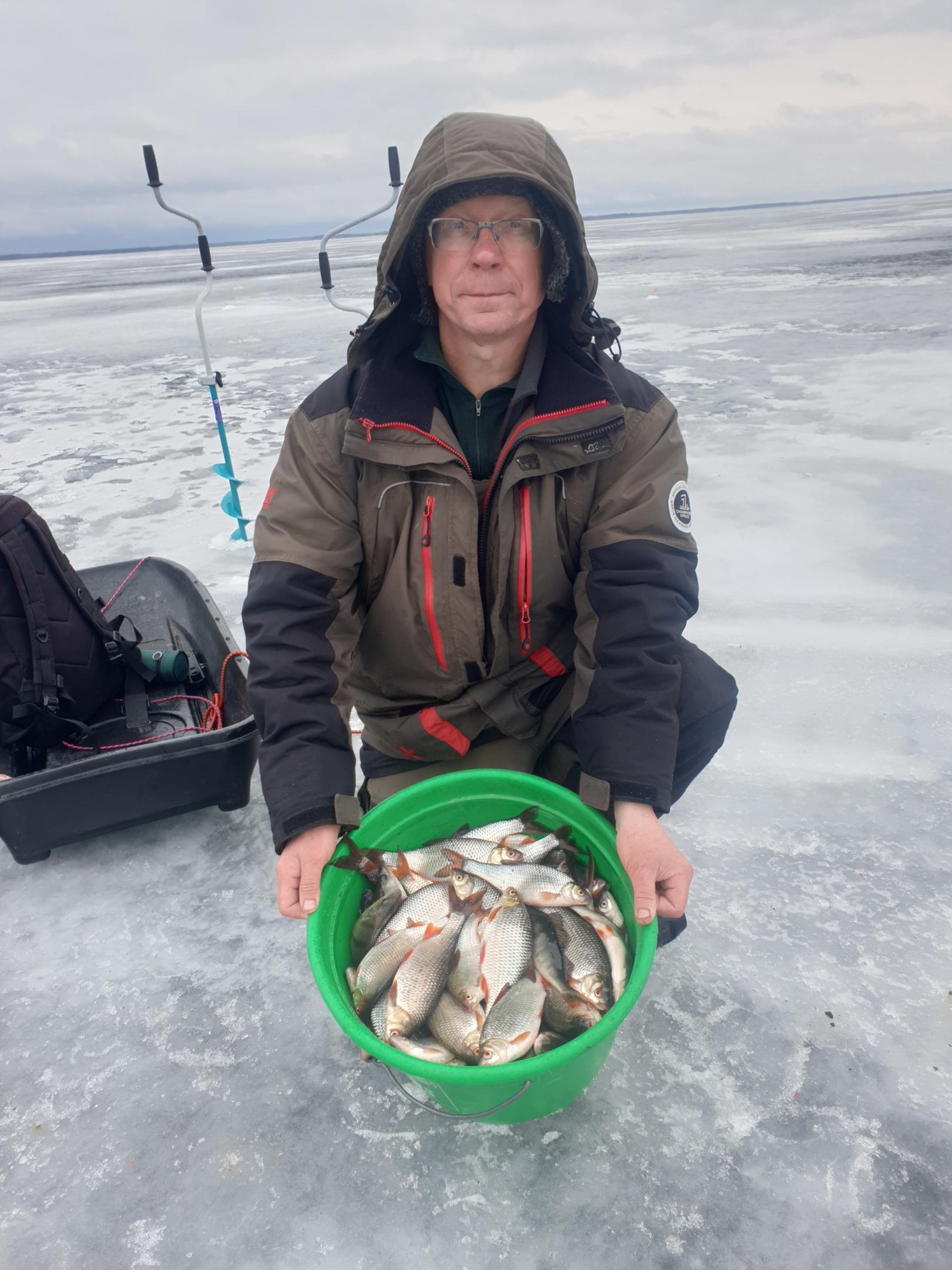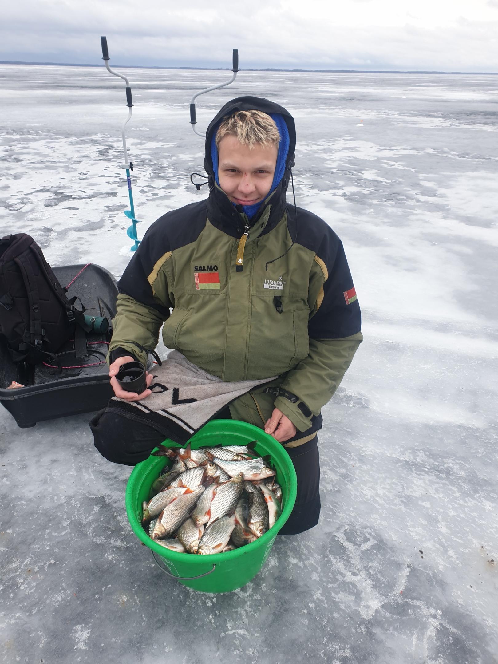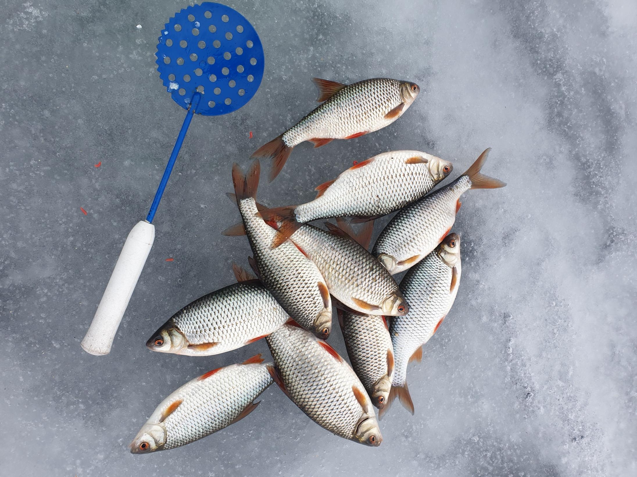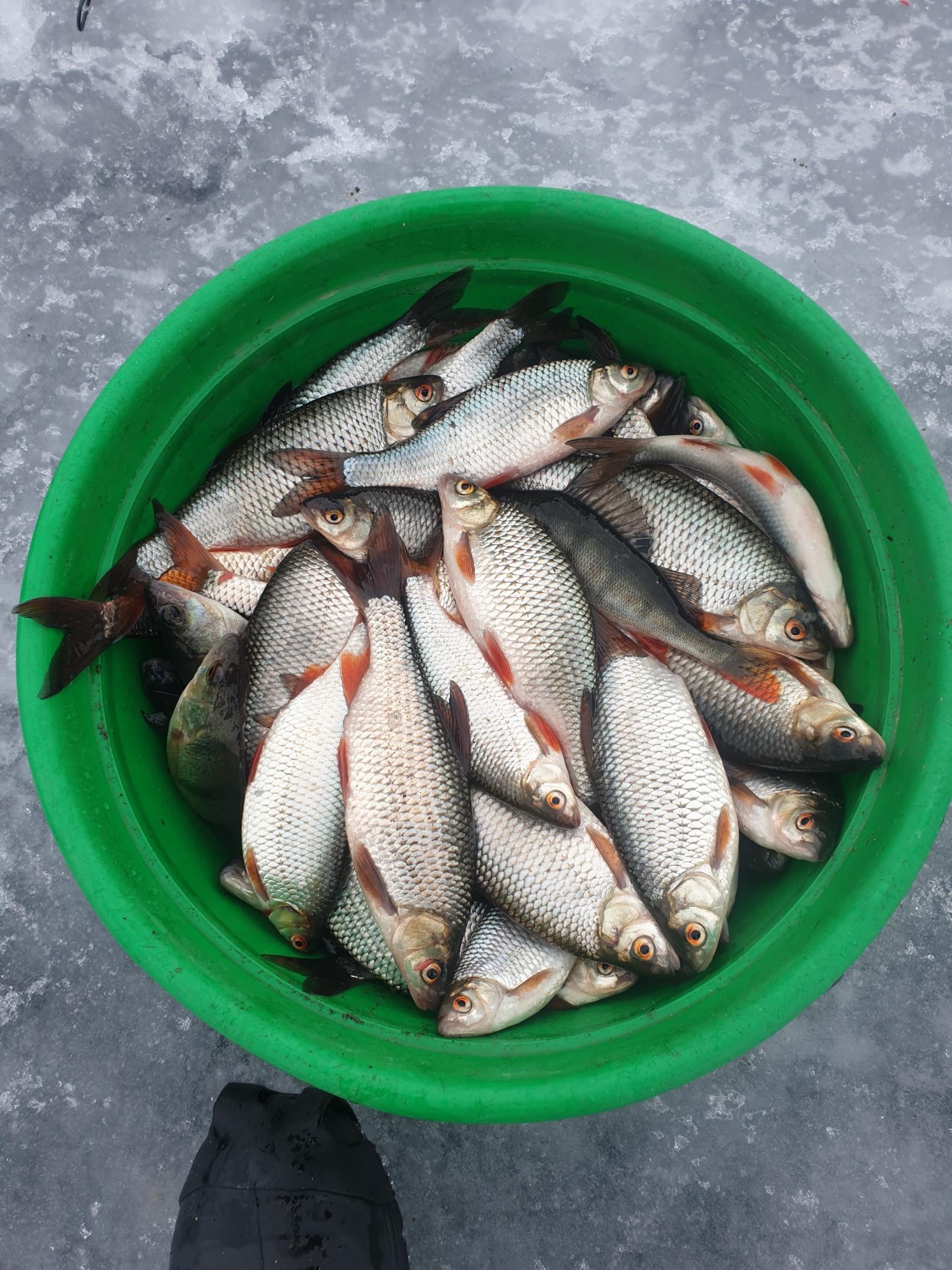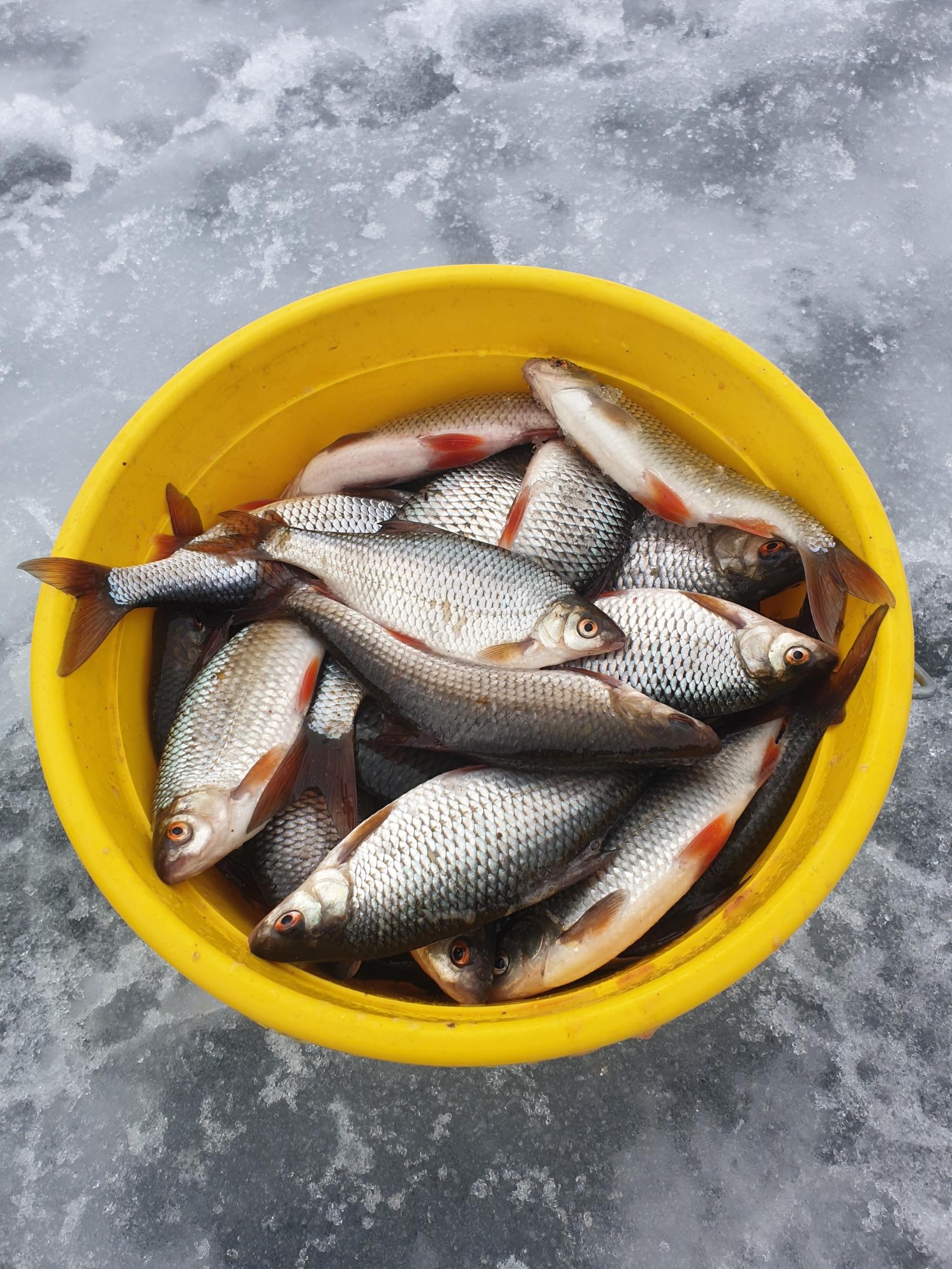 Договорились с Пашкой, что всю плотву, которую можно обхватить одной рукой, сразу выпускаем в лунку. Это значит, что к зачёту только рыба 100 грамм +. Такой плотвы было не так много, но было. Время уже после обеда, поэтому решили ловить сегодня здесь. И по итогу наковыряли примерно по 4 кг товарной плотвы каждый. Не бог весть что, но начало есть, и понятно в каком направлении работать завтра.
