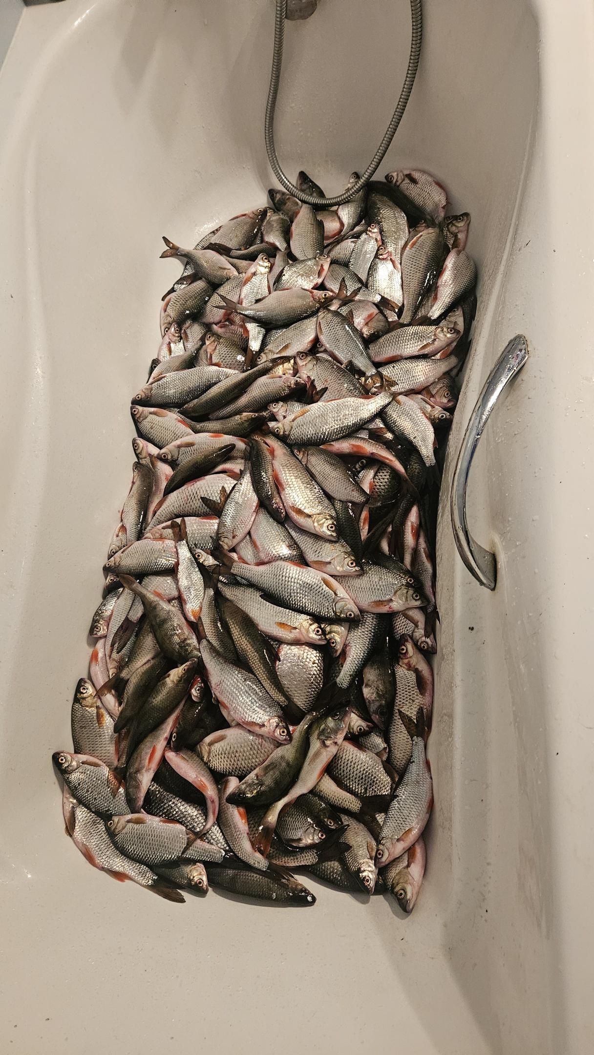 Не слишком фотогенично, но это одна из причин, зачем мы ездим на Чудо. 32 кг., улов 2-х человек за 2 дня рыбалки свежей плотвы и немного густеры будут в следующей жизни вкуснейшей таранкой.
