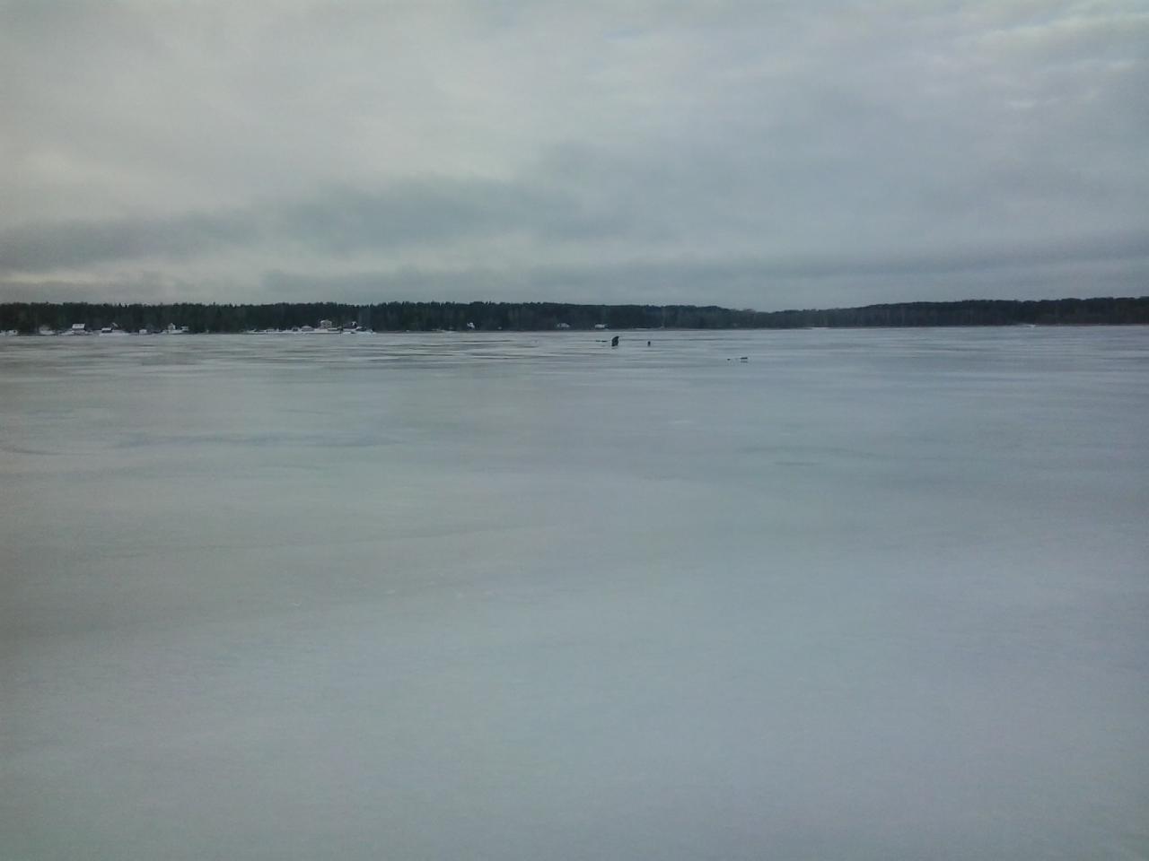 Только приехал с Псковщины. Выехали в 7 утра с надеждой по рыбалить на Езерище , за бортом в Витебске -7, как ни странно до самого Езерища за бортом так и было -7, доехав до Езерища решаем поехать на разведку на старые рабочие озёра по скольку надеялись что там всегда по холоднее на 3 град. вот уже на спидометре 130км от Витебска и темпер с каждыми 10км начинает всё снижаться на 1 град. Проехав 150км до первого озера уже -11град. Народу на нём было человек 30 рос и один экипаж Витебский. Пробурив первую лунку были приятно удивлены - лёд 20см!! Половив часок мелочь решаем переехать чуть дальше на 10км на озеро -эльдорадо. По приезду на которое очень удивились в место толпы народа ни одной души:o. Проверяем лёд не далече от берега 20см, и так по всему озеру с переменами от 10 до 20 см, всё таки озеро довольно большое. Половив ершей штук 30 на проверенном пятаке не много в шоке- где рыба? после 15-00 решили проверить дальние кардоны и вот , на 30 лунке в 16-00 попёр подлец. В результате с 16-00 с отцом норма на легке да и удовольствия куча + оторванный новый дорогой чёртик. Дядька который не пошёл с нами был очень удивлён, у него всё ещё ерши. В 18-00 садимся в машину температ. -10, в Езерище -7, в Витебске -4 .Вот такая разница.