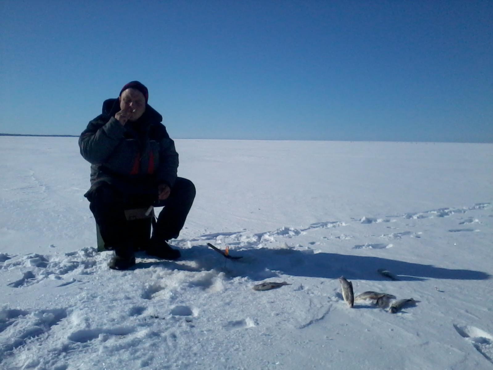 Были сегодня 3-ем. Один человек сотался лавить саплиаого недалико от брега напротив сотрова а я с отцом паперся искать окуня. В итоге я 4 кг окуня от 30 до 350 грам у отца намного хуже клев был до 12 на старых лунках и не на всех. У товарища не мение 5 кило сапливого всреднем 200-300 грам. рядом с ним сидело 4 человека у них за день 3-4 сапли на душу.