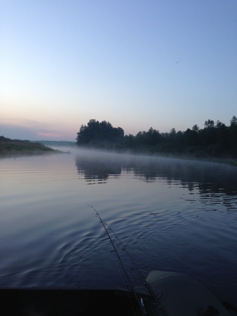 к слову сказать, еще по пути на Псковщину погода преподносила сюрпризы: проливной дождь сменялся полосами яркого солнца, но первый вечер на рыбалке выдался без дождя. Не долгие сборы лодок и в предвкушении первых поклевок мы выходим на воду: