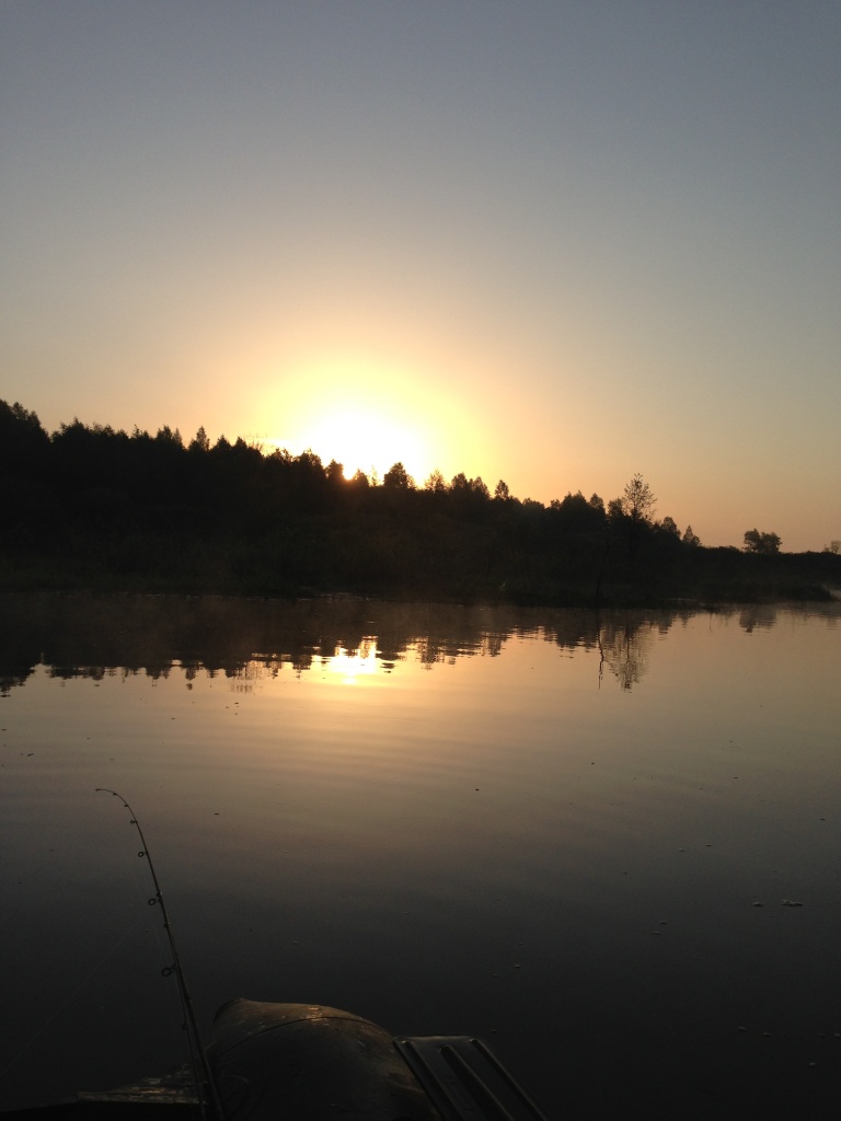 «Солнце дымное встает, будет день горячий» (С) С приходом солнца поклевки прекратились. Попался полосатый разбойники еще одна зубастая. Все пора сворачиваться, тем более, что еще надо как-то выгребать против течения. В итоге за четыре с небольшим часа активного лова девять поклевок, пять реализованы, два схода. Нормально и достаточно.
