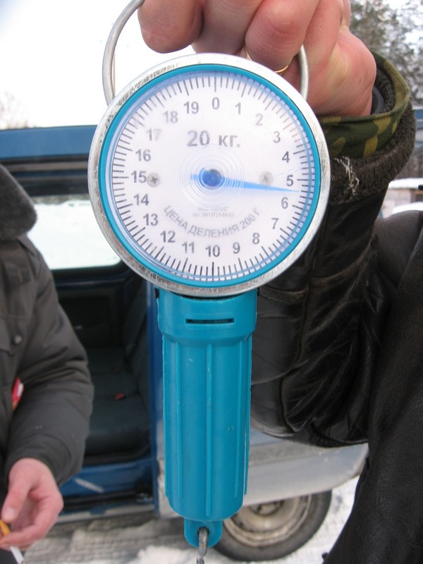По озеру протоптана хорошая тропинка. Чтобы не таскать на горбу эхолот, палатку и всё остальное, к прошлой рыбалке изготовил санки на основе детских лыж. Прошёл метров 15, и у меня одна лыжина обломалась, что как ни странно, не особенно помешало дальнейшему передвижению. Вышли на намеченную точку. Как с тропинки сходишь, так как и на всех озёрах, слой воды под снегом. Идти тяжело. Мужики начали вскрывать старые лунки, но я же не ищу лёгких путей, поэтому сверлил новые. Первая под эхолот с водой под снегом далась очень нелегко, бур застревает и не провернуь. Две других под удочки пришлось сверлить в очень ускоренном темпе. Остальные просверлим позже. Глубина 7.5. Эхолот показывает не просто рыбу, а целый слой, где не различить отдельных особей. Вот я им сейчас мотыля, сразу без прикормки. А они брать не хотят. Закормил соседнюю лунку и туда поплавок. Клёв начался сразу, как на «Чёрных камнях», забегая вперёд, скажу, что 90 % я поймал на поплавок, хотя может потому, что не всегда успевал вовремя менять обгрызанного мотыля на мормышке. Kluy вырвался вперёд за счёт своей большей морозоустойчивости. Меня же мороз сильно напрягал, руки постоянно мокрые, пока их отогреешь. Мотыль постоянно подмерзает. Подлещик стянул 2 удочки, много времени потерял на распутывание. В итоге одну пришлось оборвать. Надоело, поставил палатку, там дело пошло лучше и мотыль отогрелся. Подлещик шёл хороший, не прозрачный, как на некоторых озёрах, до 200 граммов, без явной мелочёвки, что не могло не радовать. Правда, один подлец попрыгал по леске, запутал соплями удочку и свалил в эхолотную лунку. Туда же выпрыгнули ещё 2 из пакета. Сходов тоже хватало в толще воды, и раз зацепился крючком за обмороженный край лунки. Изредка набегали мизинечные ёршики. В течение дня у меня даже не появилась необходимость в дополнительных лунках, ну, может, около 13.00 я просидел минут 15 без поклёвок. Докормил с руки и дело пошло дальше, начали попадаться плотвички, но подлещик клевал до конца рыбалки, в 15.00 мы потянулись к выходу. Итог 3500.