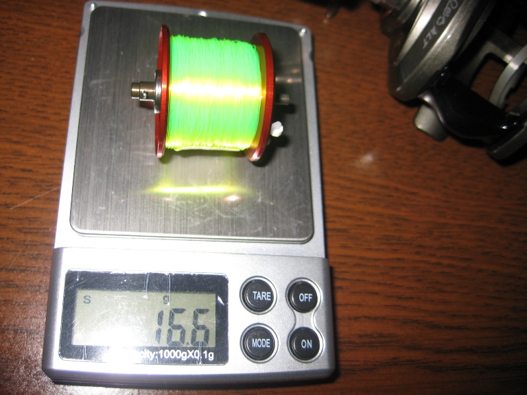 На шпулю намотано 100 метров моно 0,22 мм сечением (по заявлению производителя) вес шпульки составил 16,6 грамм.