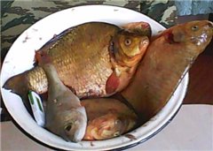 Около 9 утра, как и в прошлый раз, что-то "взяло". Это "что-то" водило удочку туда-сюда - минут 5. Обычно рыба хоть бок покажет, а тут - ни в какую. Но ещё минута - и показался кусок хорошего "золота". Нежно завёл его в подсачек... Оказывается, я его за передний плавник забагрил... Через полчаса - опять поклёвка - и ещё покрупней карасик, но уже пойманный по всем правилам , за губу... Потом ещё, и ёщё, но поменьше первых двух... Попадалась и другая рыбка - окуни, плотва, подлещики, но они не в счёт - не за ними я туда приехал... Kategorik же, сидел в своей лодке совсем недалеко... где-то метров 15 от меня. И за всё утро, словил 5-6 карасей, но маленьких и... серебрянных. Хотя и он приехал на рыбалку - за золотыми...
