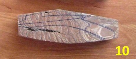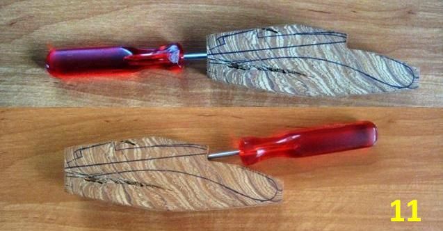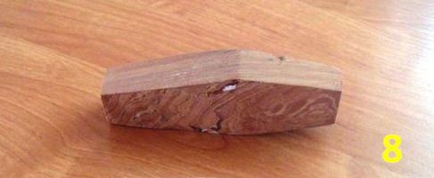 Если заготовка получается супер, но в самом неудобном (никак не обойти) месте трещина – не беда. Заполняем трещину со всех сторон суперклеем, быстро и сильно сжимаем на 30 секунд – можно руками, можно наступить, можно струбциной, – удаляем остатки клея с поверхности ножом или наждаком, и трещины нет (фото 9 -