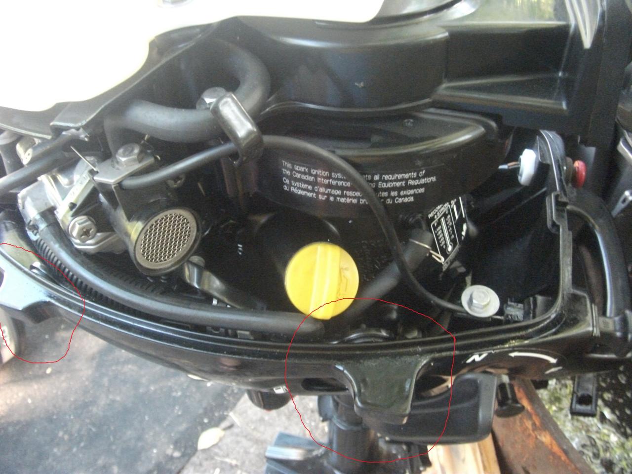 • На лодочных 4-х тактных моторах на корпусе куда ставится чехол сделаны специальные отливы на тех сторонах на которую можно ложить мотор. Эти отливы сделаны специально, что бы мотор ложился на них и не дал поцарапаться краске на колпаке. Вот на эти отливы и ложи мотор и всё будет хорошо, только смотри что бы поверхность была горизонтальная , т.е голова мотора всегда должна быть выше ноги.