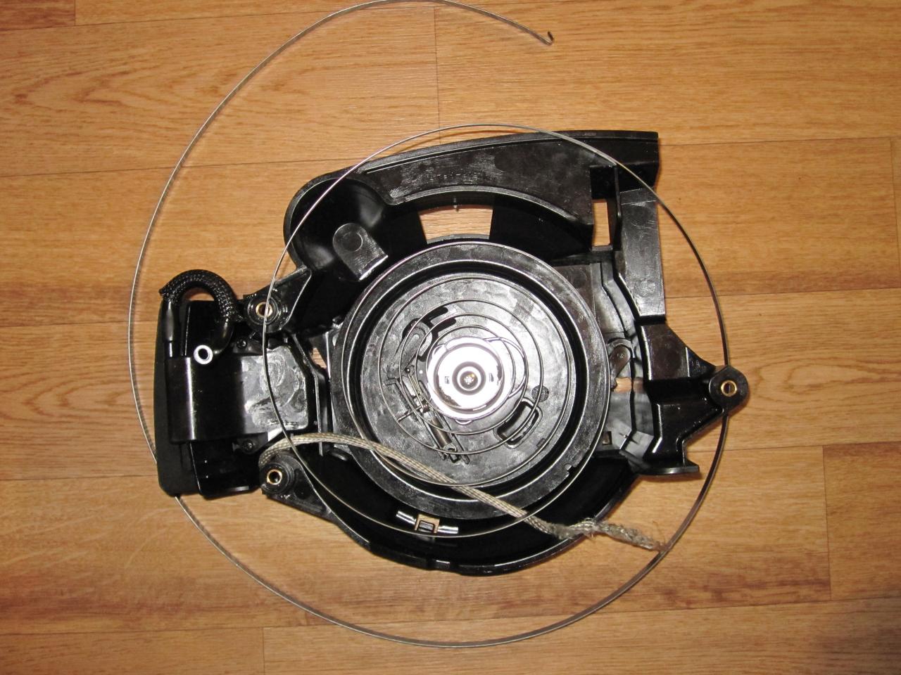 Теперь не можем затянуть обратно пружину возврата стартера.