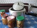 Ставим банки в скороварку (на дно прокладка из металлической сетки), доливаем воды до уровня крышек банок, закрываем скороварку и на огонь.