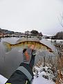 Сегодня снова получилось выскочить на открытую воду . Погода жуть , но 3 взял ( одна чего то не проявилась - может из-за мороза ? ) , при чем все три пойманы в течение десяти минут с одной точки на уже проверенный Keitech Easy Shiner 4' SCUPPERMONG RED#435 . Биг Фиш не смог вытащить , берег скован прибрежным льдом , вот об него эта хитрая бестия плетенку и почикала ...