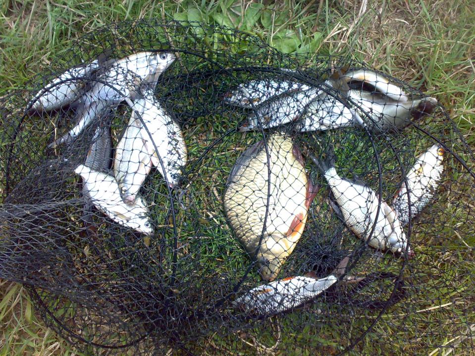 • С субботы по воскресенье отдыхали с семьей и друзьями на Петровичах с заездом от Лозового Куста в направлении высоковольтки. Ну и естественно порыбачили. Фидер, удочка - мелкая плоточка, подлещик, густерка, со спиннингом немножко прошелся - ни тычка. Сын порадовал очень, на бычках упражнялся, красноперочку, окунька и плотку поймал также, получается потихоньку у него, растет смена. Пробовал я фидера в закидушки переоснастить и на бычка забрасывал в надежде окуня или судачка расшевелить - тишина. У приятеля на мах на кукурузку плотвичка до 100 гр поклевывала неплохо, помог ему немножко рыбки подсобрать, ну и себе пару жмень на сушку увез. Пока приятель отдыхал, жена слегка постервятничала и на его снасть на сальце карасика золотого изловила, в конце рыбалки это дискус-красавчик ребенком был отпущен на свободу, возможно еще кого-нибудь порадует поклевкой. Ночью лещик не подошел, спал он, наверное, в отличие от меня. Немного фоток с места событий. НХНЧ!