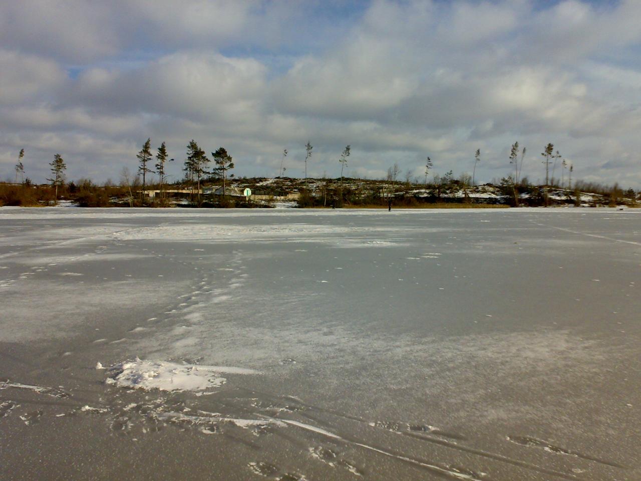 Теперь по существу. Подъезды присутствуют. В районе дамбы, к примеру. На дамбу ехать можно, сбоку дороги приткнулся, и топай-лови. Проезжал мимо когда, немного, но машины были вдоль дороги. Я же мотался в Зелёный Лужок. Автос в конце деревни решил парконуть, к бане на ём не посунулся, колея то была, но для пузотёрки весьма коварная. Дорога пешком до места ловли заняла не спеша минут 12-15, не больше. В общем, в районе бани и крутился, ходить далеко по такому, что сейчас на льду творится - удовольствия мало. Да и во времени на ловлю ограничения, как-никак поздноватенько вышкребся. Ловил с пяти до полдевятого. Цель - судак. Балансирил его. Лунок 60-70 навертел, их и облавливал. По насверленным и покинутым к вечеру рыбачками, их не много было, также пробежался. И вы не поверите, результат есть:D Нулевой:cry: А тоже ведь результат;):-| И вот такое чёрти-что - Нажмите на изображение для увеличения.
