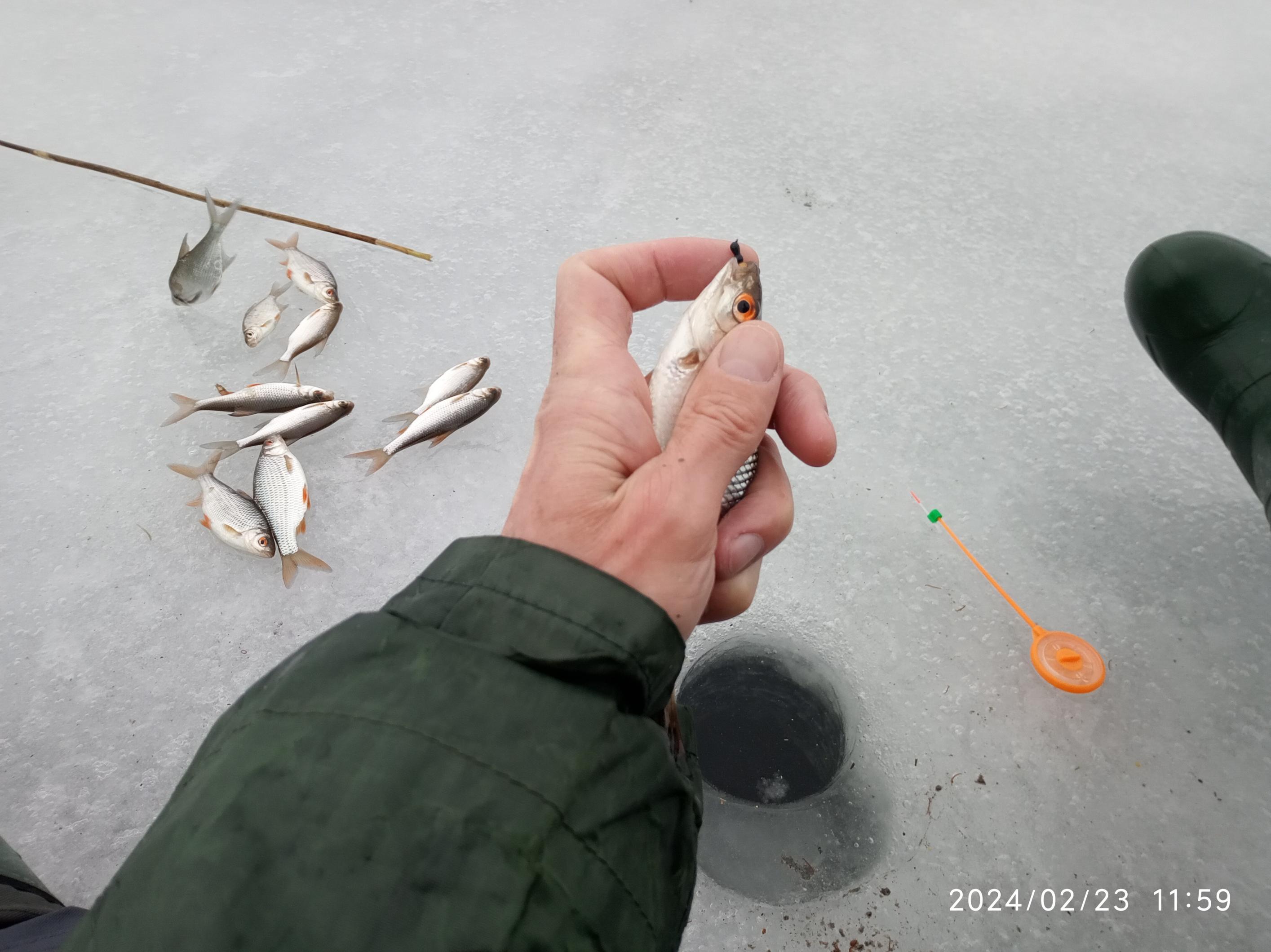 А рыбка, - ча́ще, - плотви́чка, ре́же, - густёрчины, микроподлещёвка, - под лунками прису́тствует, и в коли́честве, и безмотылку мою она уверенно грызёт.