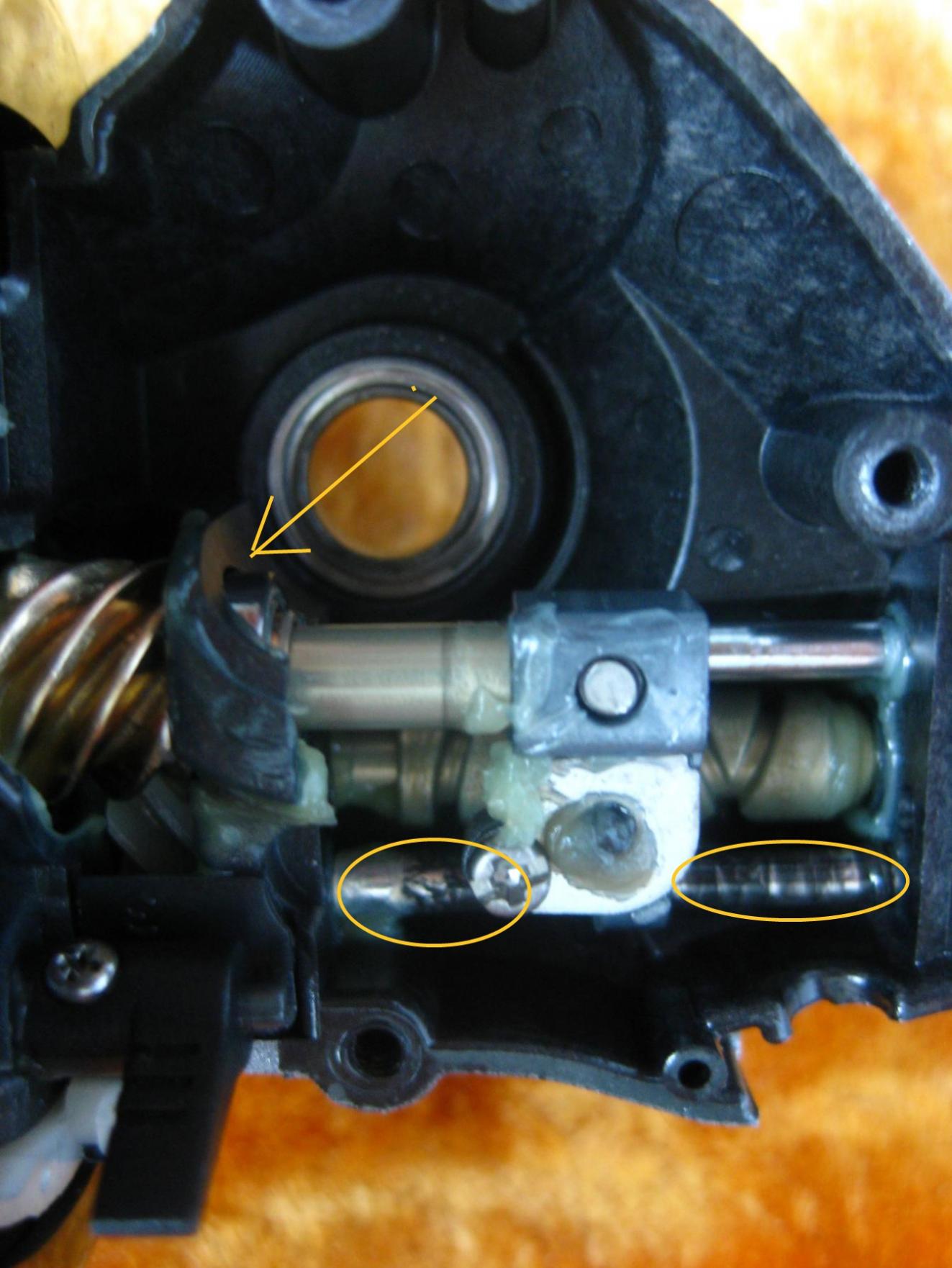 Дык еще нормально.... но признайся подгружаллл;) нижняя направляющая вся в бурле (желтый овал), эт аннодировка с каретки стираеццо.... соответственно стоит с перекосом...и чешет об силуминовую направляющую, грузил значит или на заводе вперли так, не критично но прыщик есть ,2 сезона и фурункул.....уверен что и намотка ухудшена по горбику у краев......