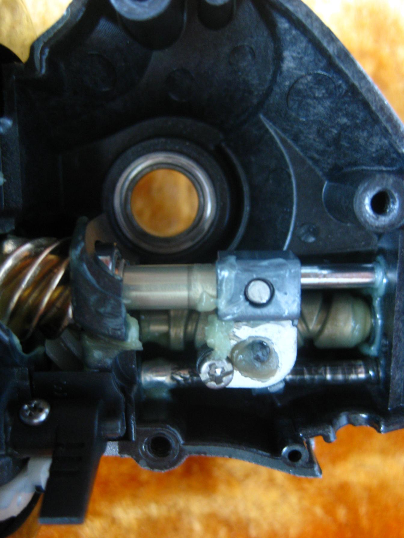Дык еще нормально.... но признайся подгружаллл;) нижняя направляющая вся в бурле (желтый овал), эт аннодировка с каретки стираеццо.... соответственно стоит с перекосом...и чешет об силуминовую направляющую, грузил значит или на заводе вперли так, не критично но прыщик есть ,2 сезона и фурункул.....уверен что и намотка ухудшена по горбику у краев......Сообщение от mr. X Посмотреть сообщениеесли кому будет интересно, внутренности нового рарика 2500 после достаточно плотного сезона рыбинга в весовой категории до 10 г